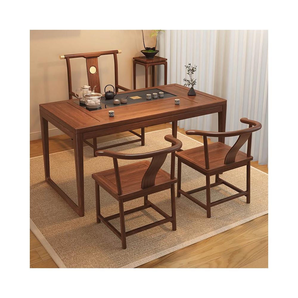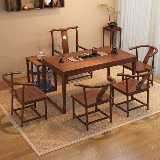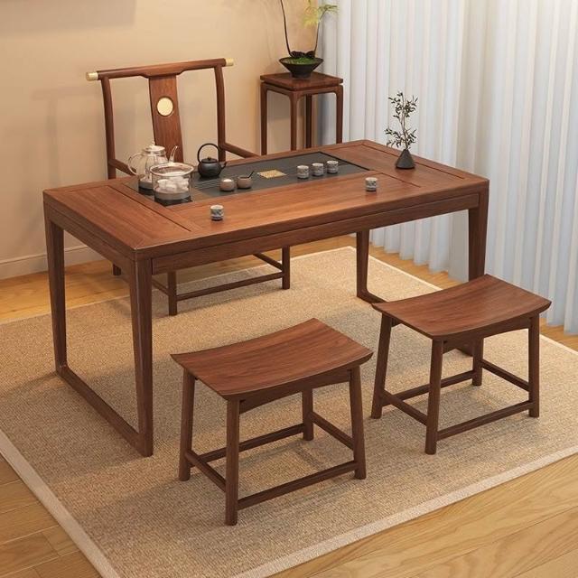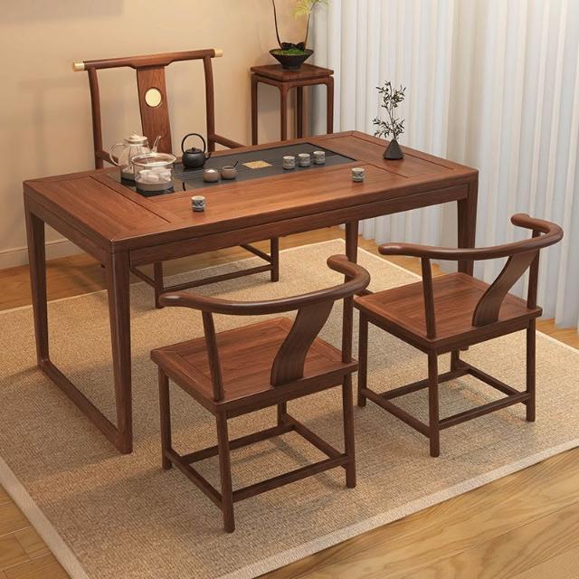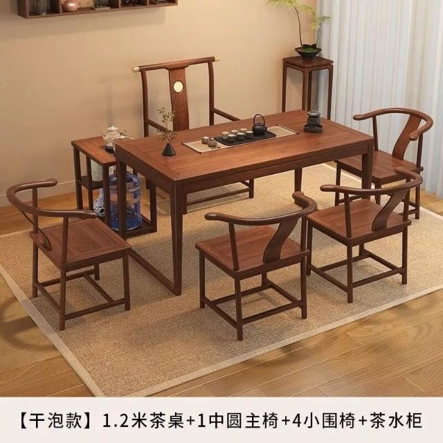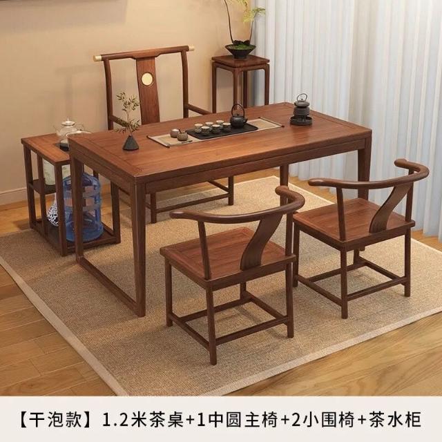 胡桃木陽臺茶桌椅組合新中式小戶型家用簡約泡茶臺實木功夫泡茶桌