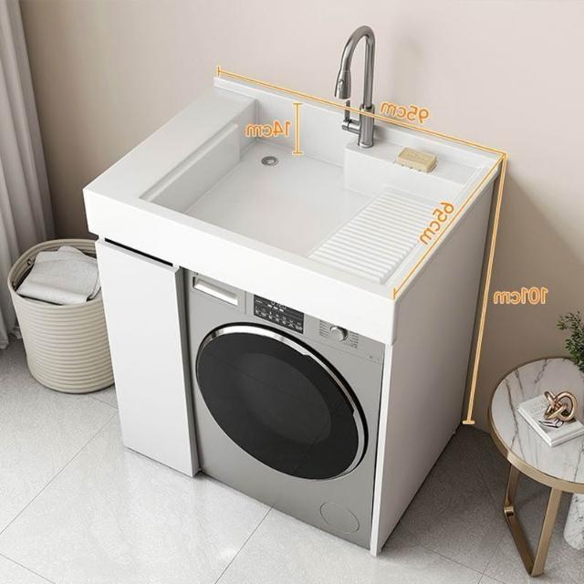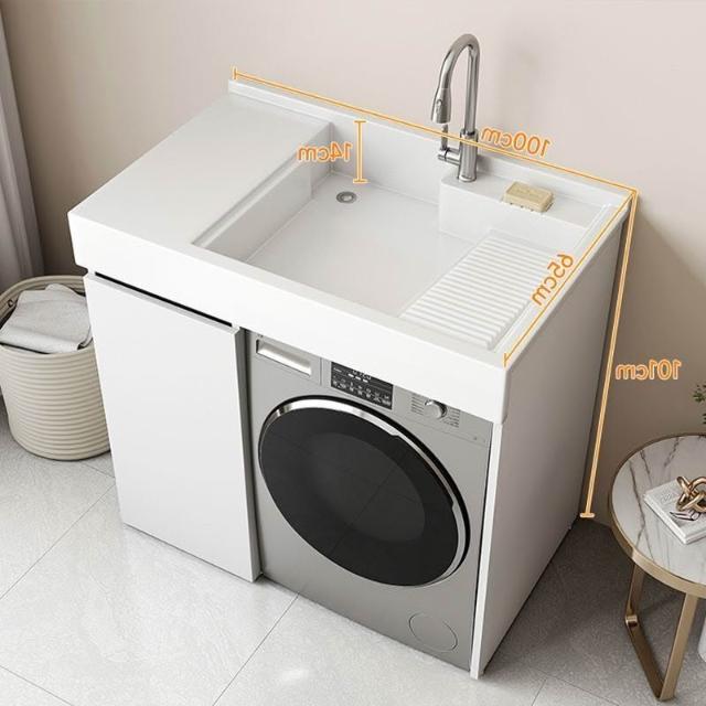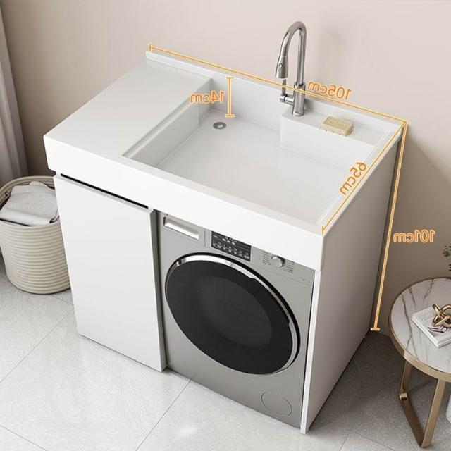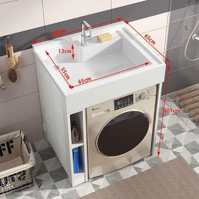 小戶型陽臺洗衣櫃 一體機上臺盆 滾筒洗衣機櫃 帶搓板衛生間浴室櫃