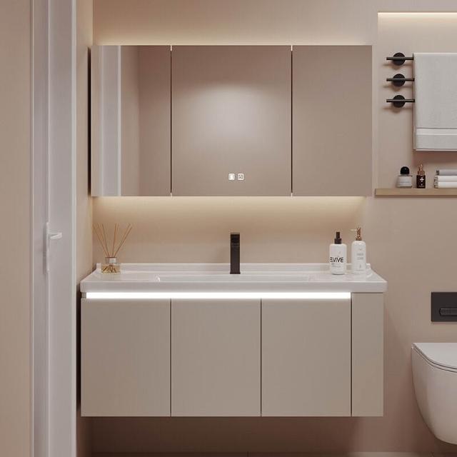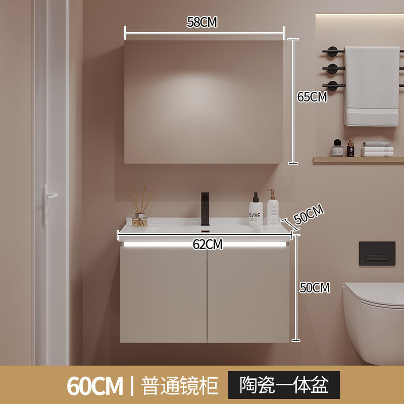 陶瓷一體盆浴室櫃組合帶側邊儲物格衛生間洗手洗臉盆洗漱池衛浴櫃