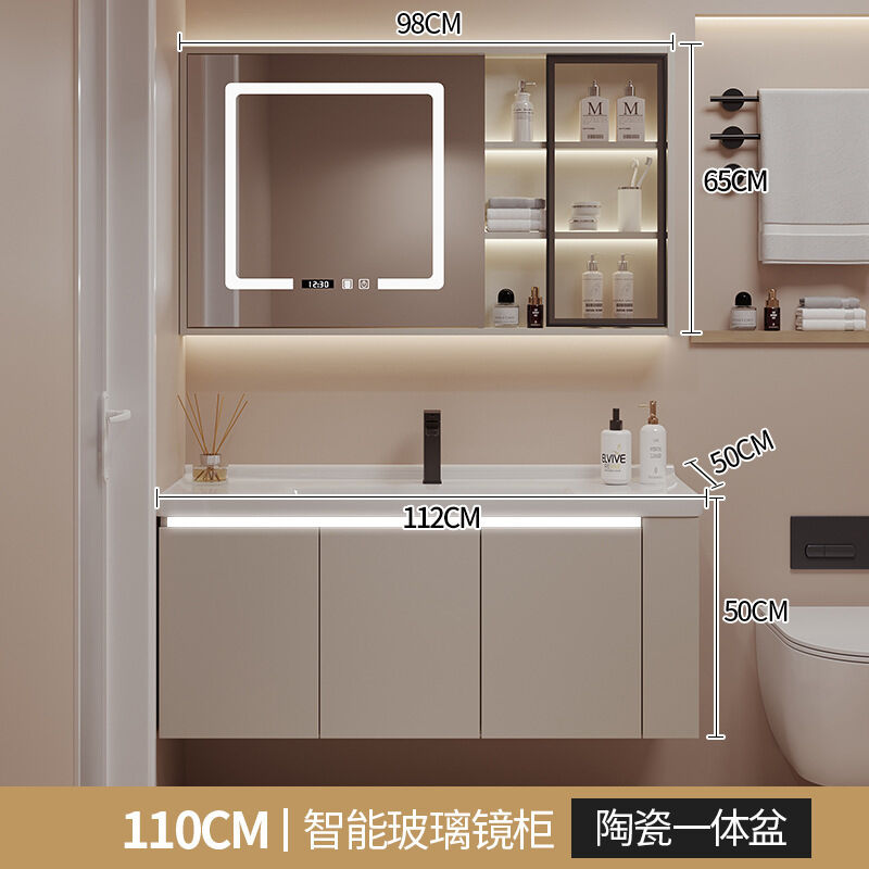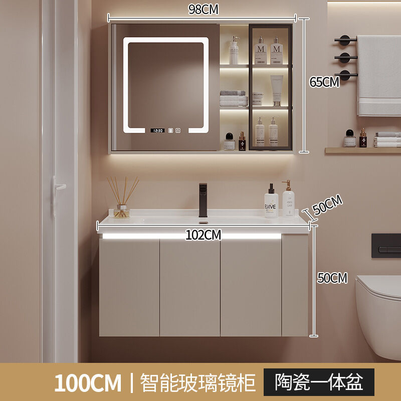 陶瓷一體盆浴室櫃組合帶側邊儲物格衛生間洗手洗臉盆洗漱池衛浴櫃