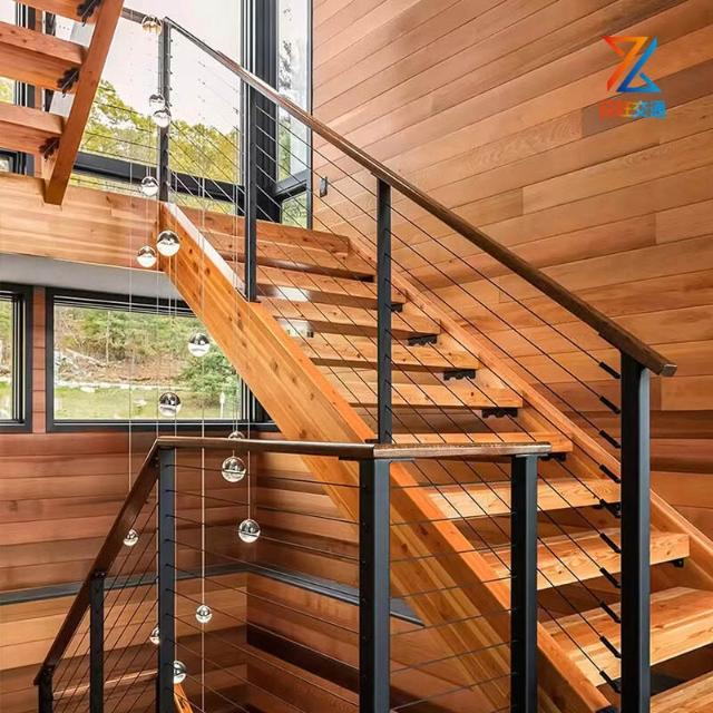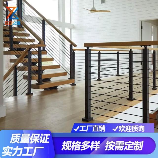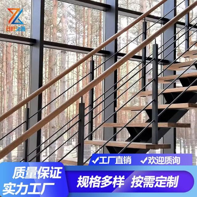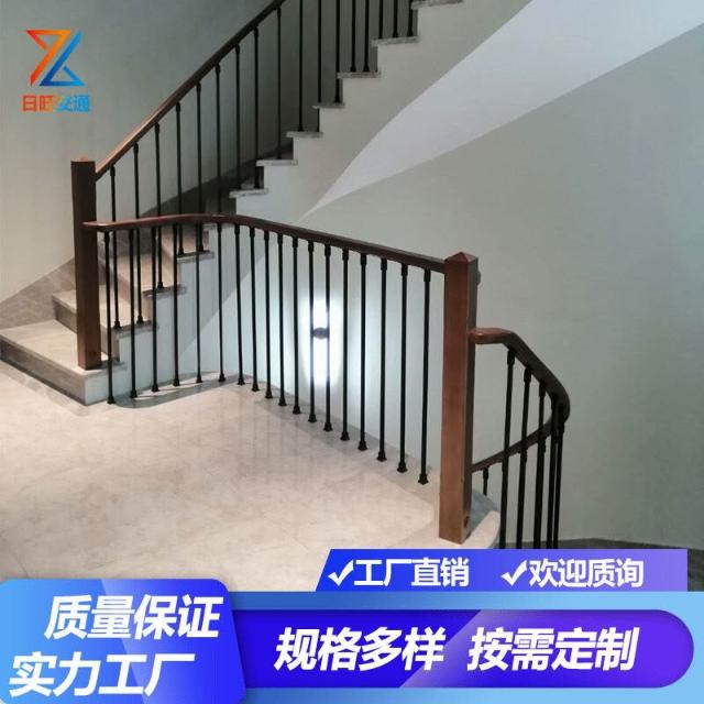 不銹鋼木紋樓梯扶手現代簡約鐵藝欄桿小區別墅過道走廊裝飾防護欄