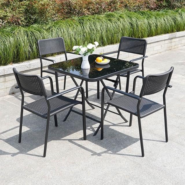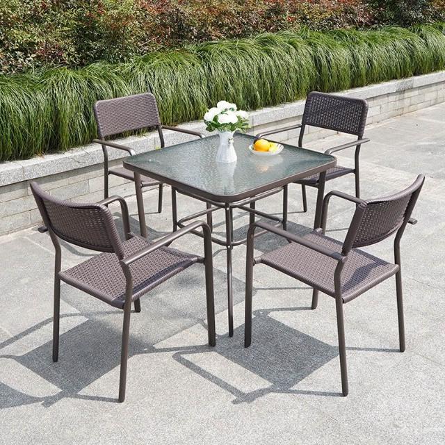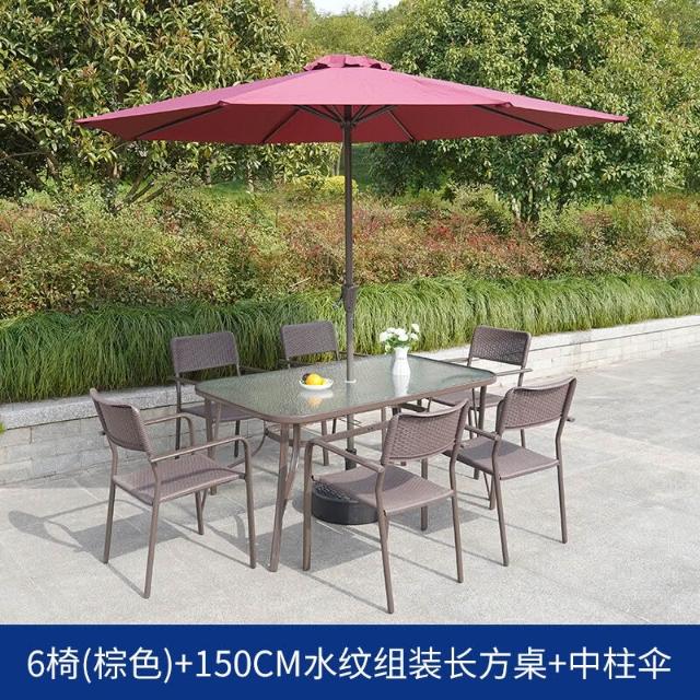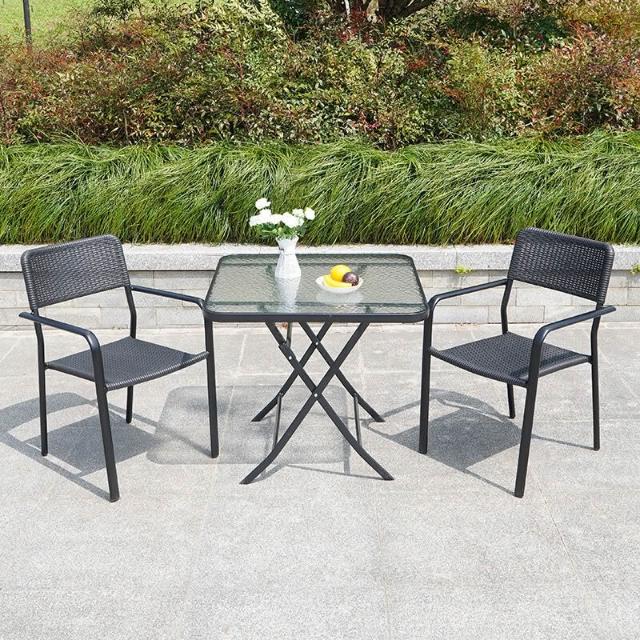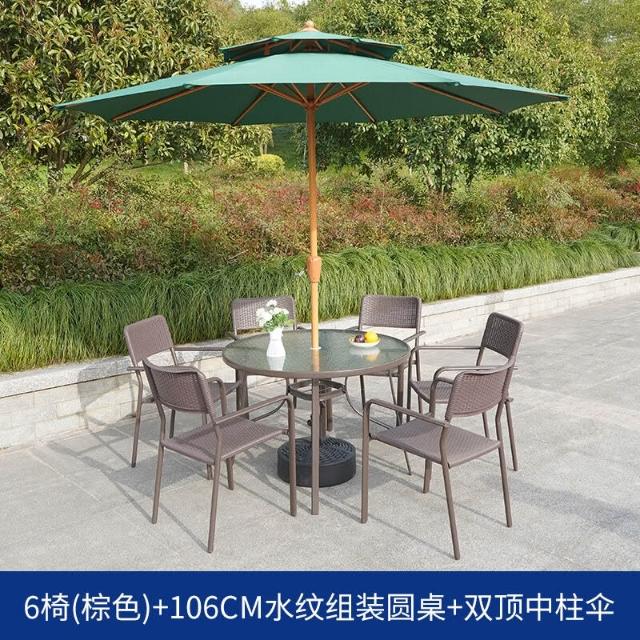 戶外桌椅帶傘組合庭院露天花園桌椅三件套家用室外休閑陽臺小桌椅