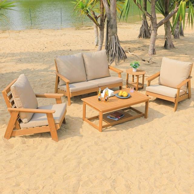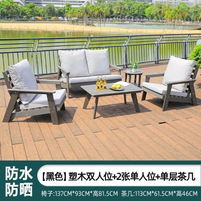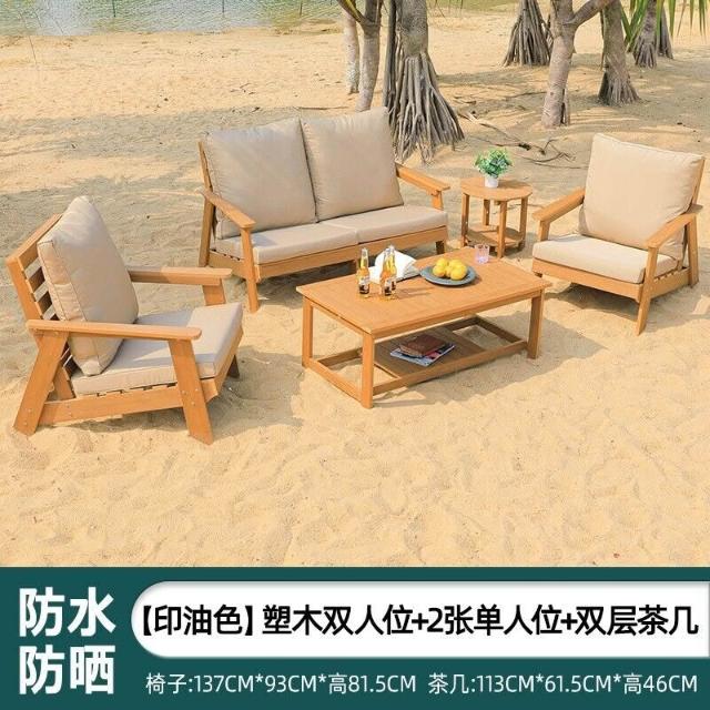 戶外陽臺花園休閑簡約塑木沙發組合沙灘海邊室外防曬防銹家具桌椅