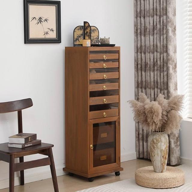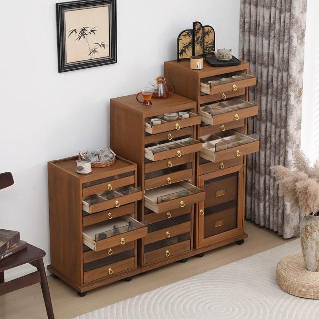 新款實木牙科櫃茶具多層收納櫃經典中式零甲醛胡桃色手串珠寶收納