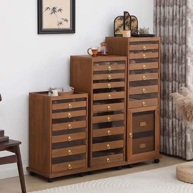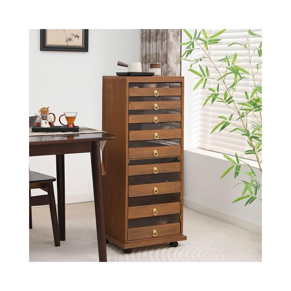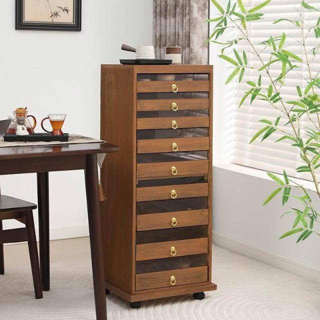 新款實木牙科櫃茶具多層收納櫃經典中式零甲醛胡桃色手串珠寶收納