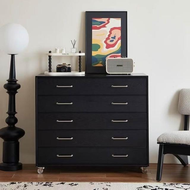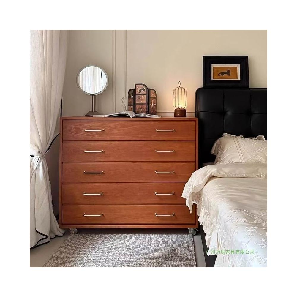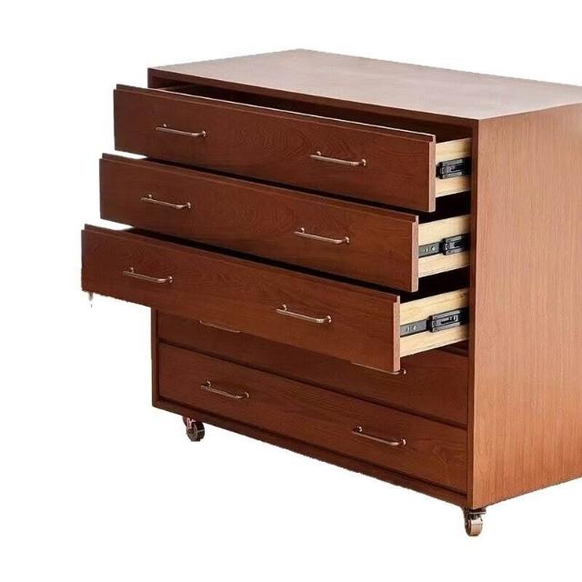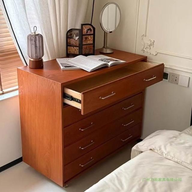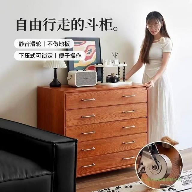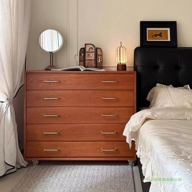 中古風新款鬥櫃家居卡門櫃中古風五鬥櫃胡桃色收納櫃置物櫃客廳