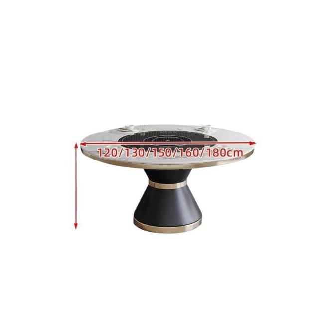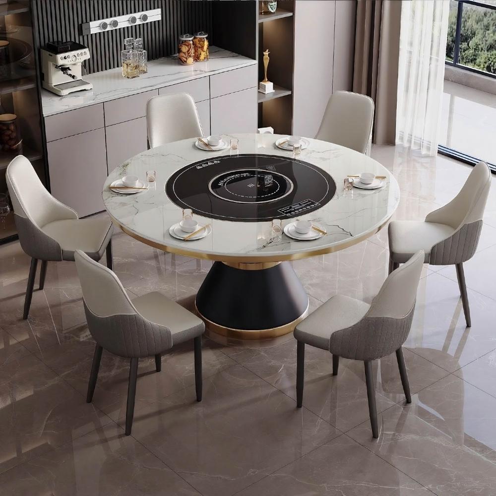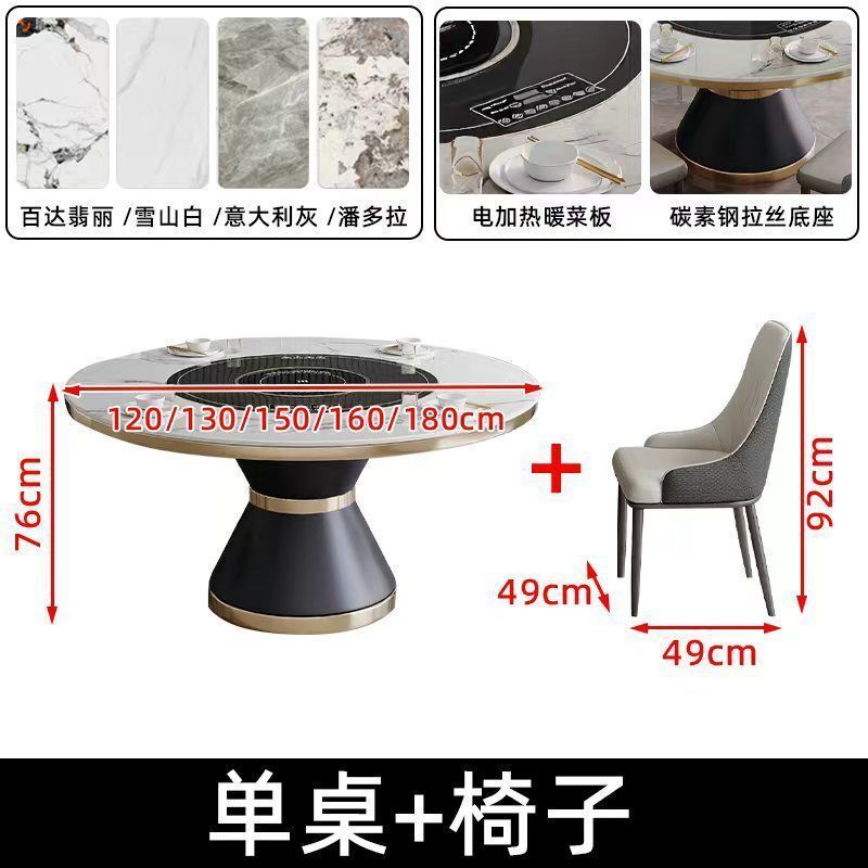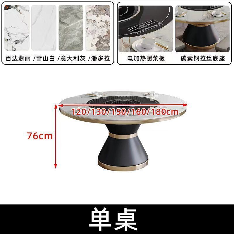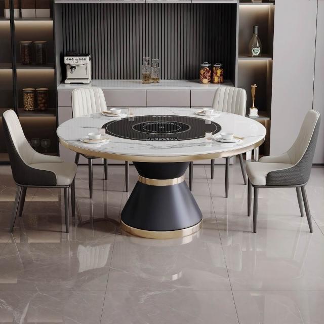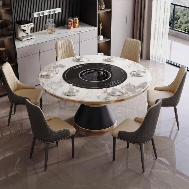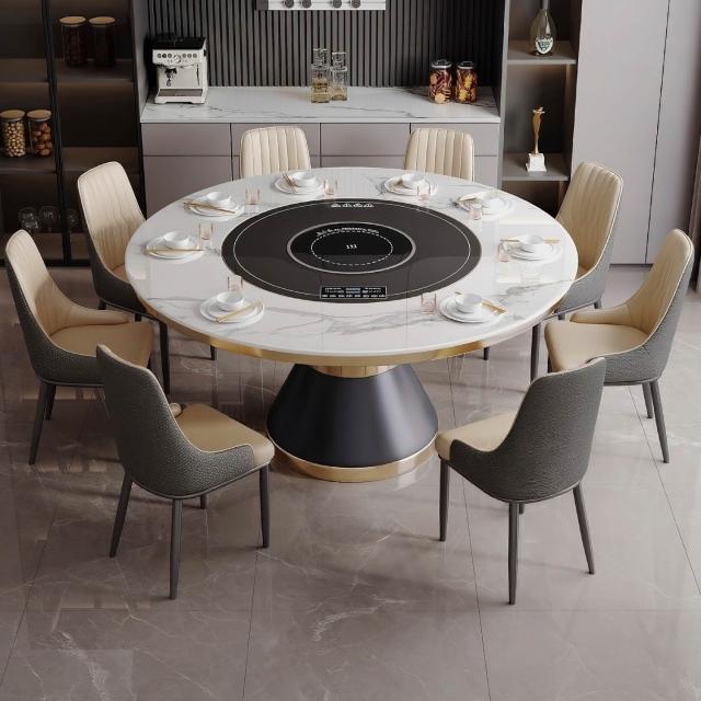 新款圓形巖板餐桌組合現代簡約多功能轉盤嵌入式電磁爐家用一體桌