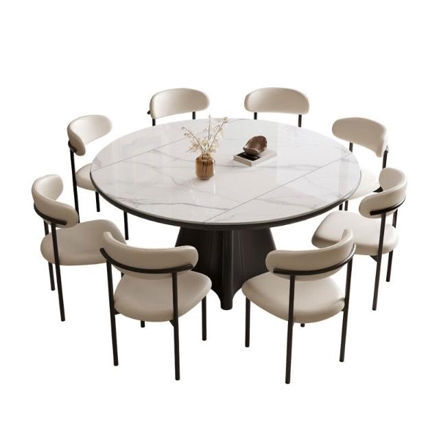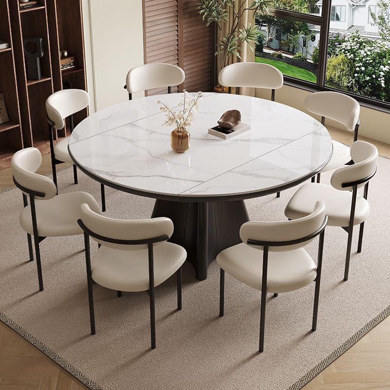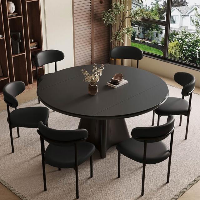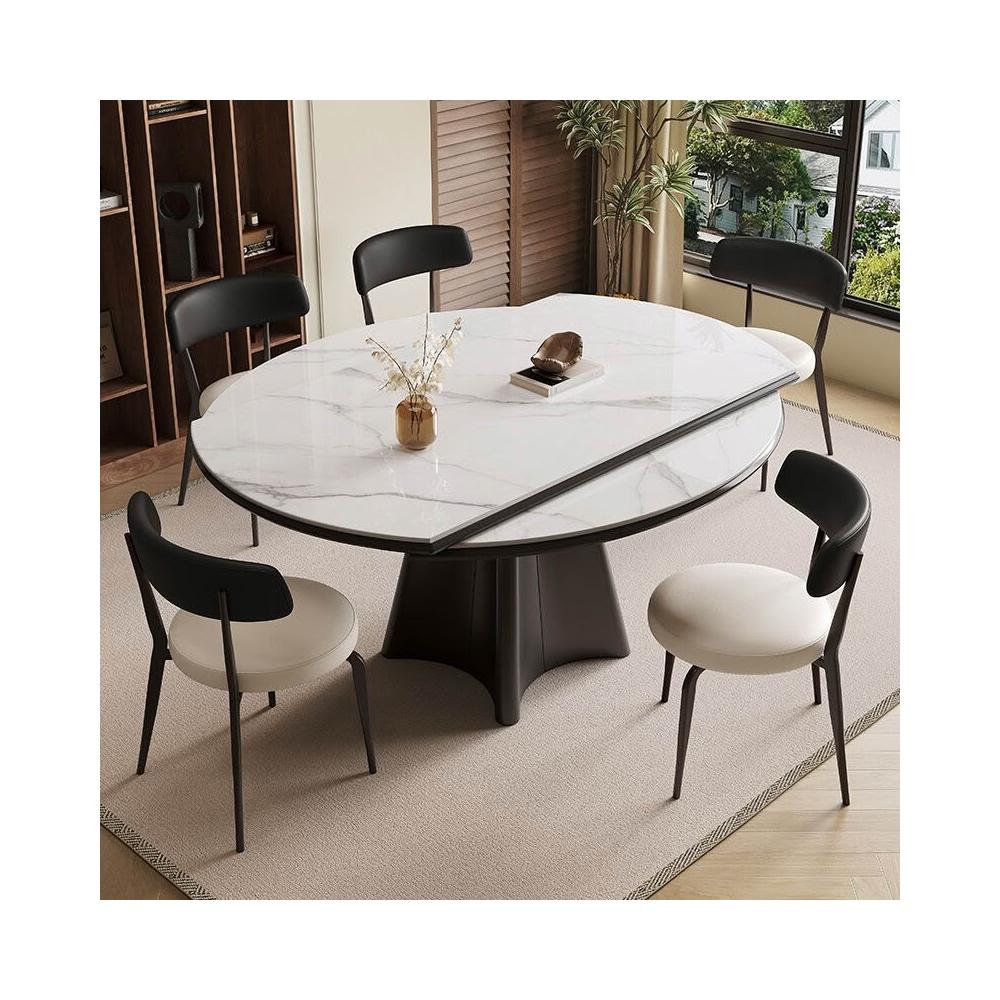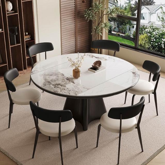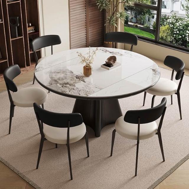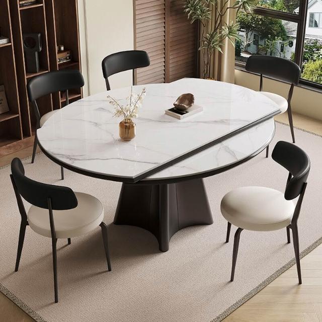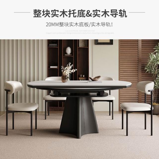 意式輕奢巖板餐桌家用小戶型現代簡約可伸縮折疊方圓兩用吃飯桌子