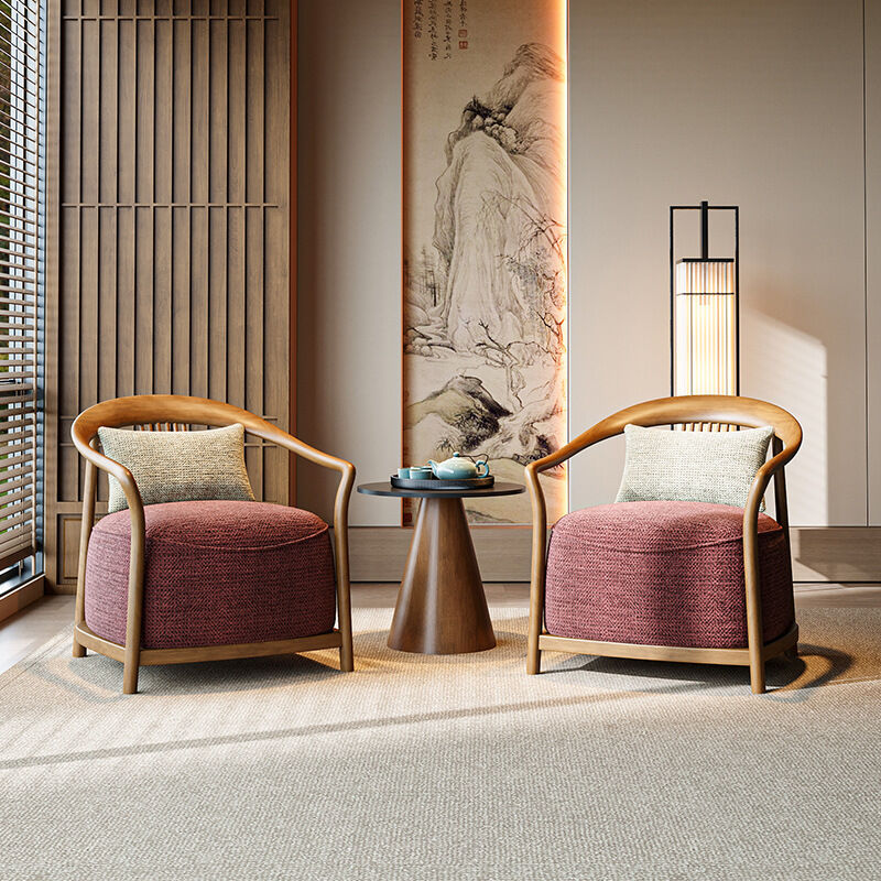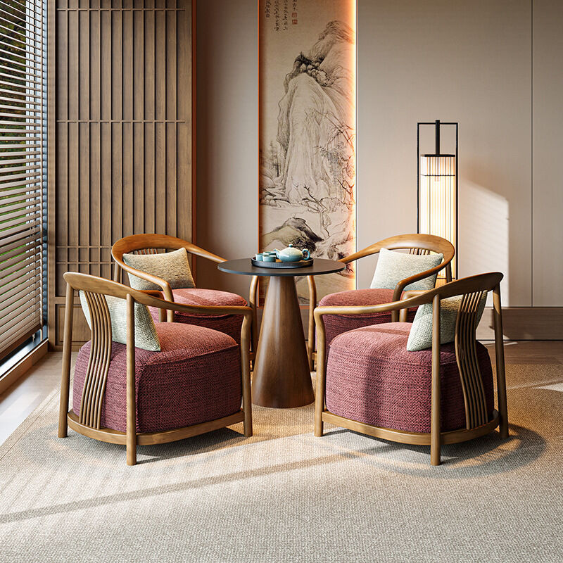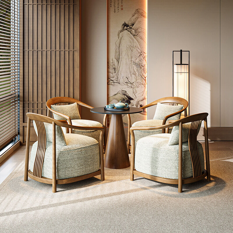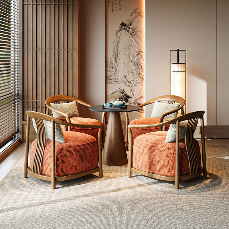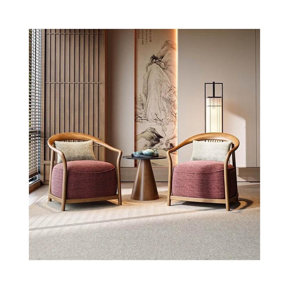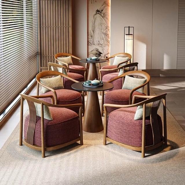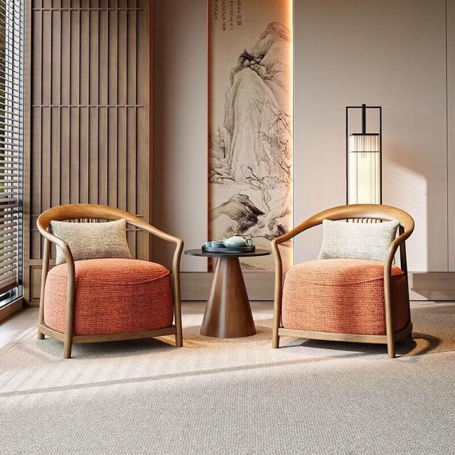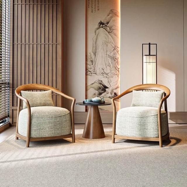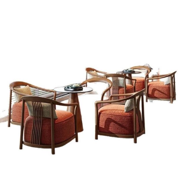 新中式實木單人沙發椅設計師酒店大堂商務休息區輕奢一桌兩椅組合