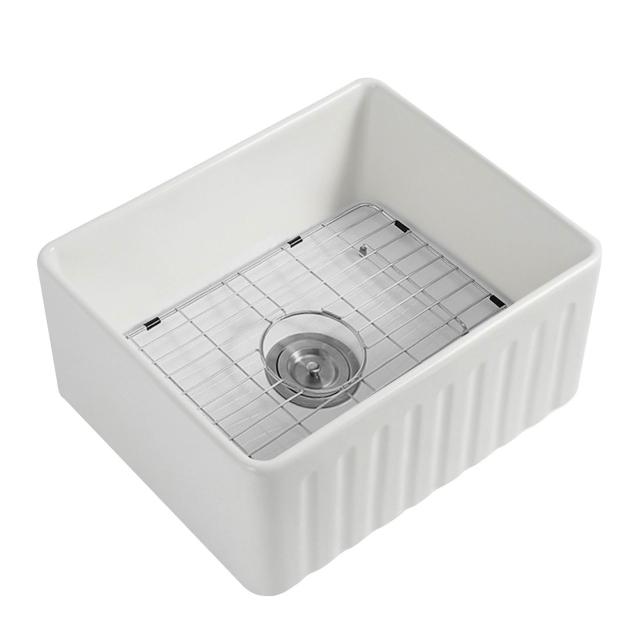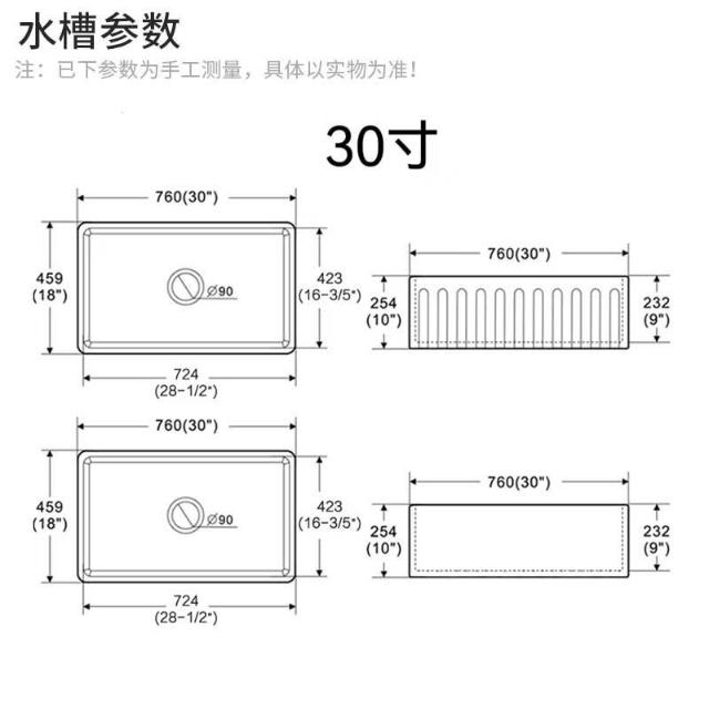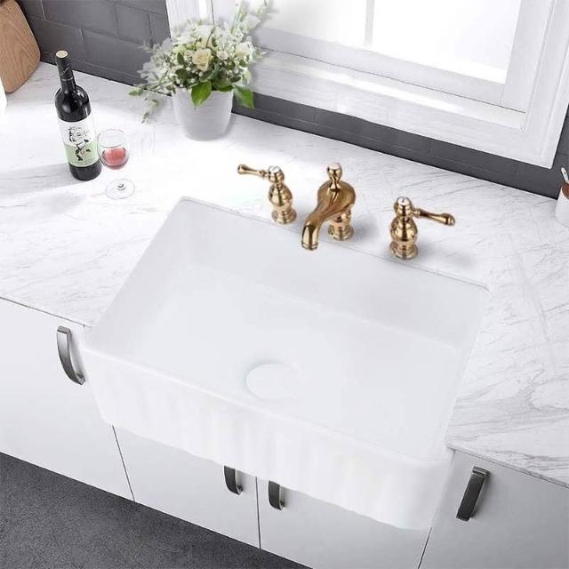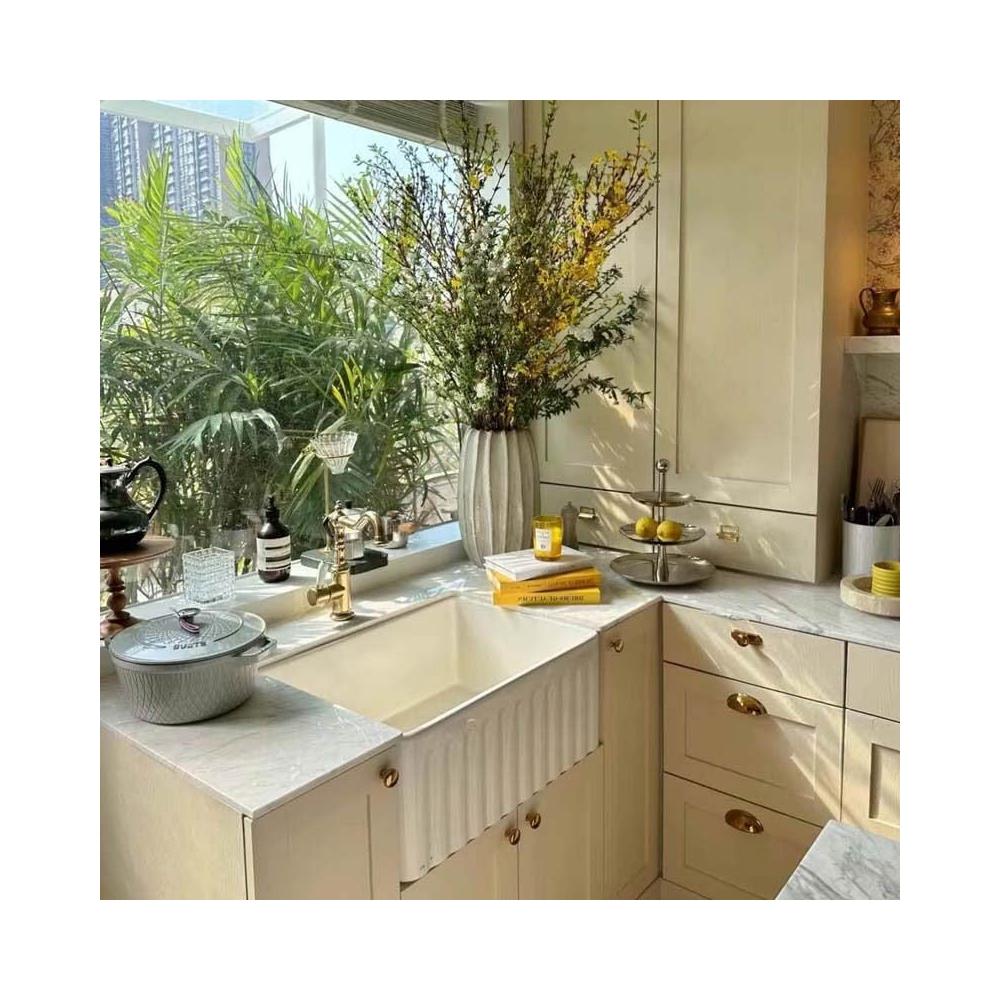 美式豎紋廚房水槽陶瓷洗菜盆雙面洗碗池陶瓷大單槽臺下盆櫃盆