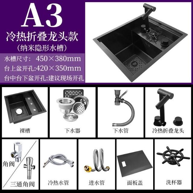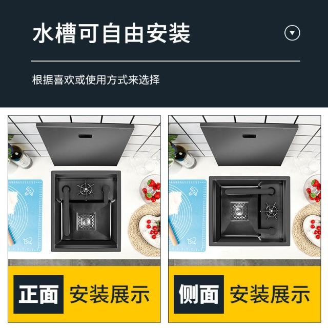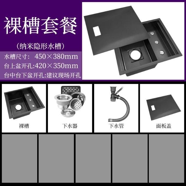 隱形水槽廚房小單槽納米304不銹鋼吧臺中島西廚迷你洗菜盆帶蓋板