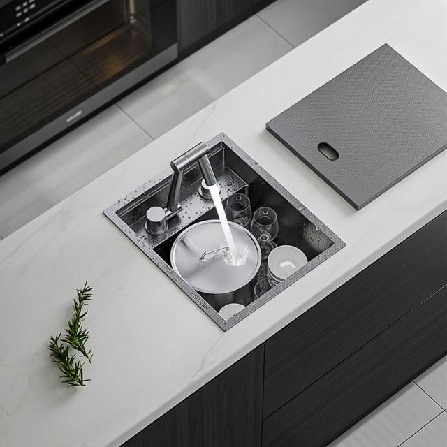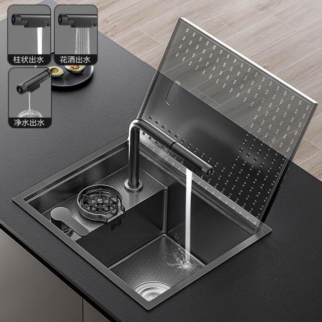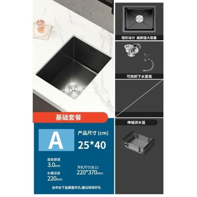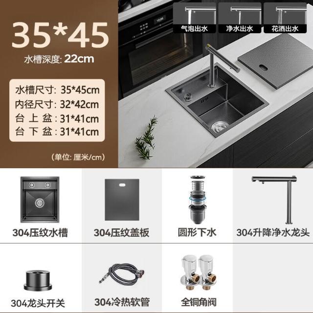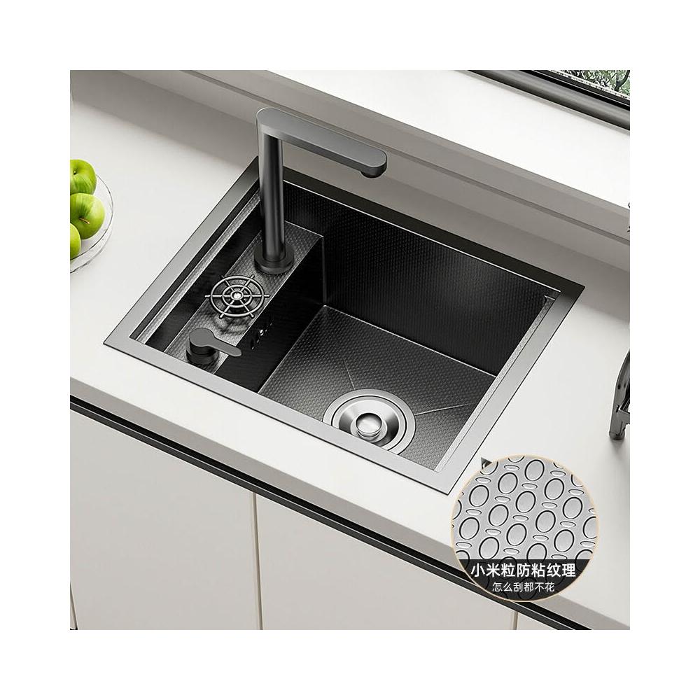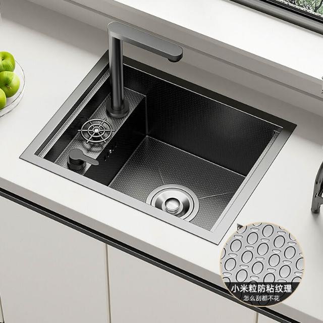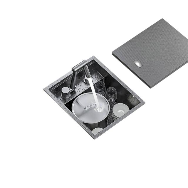 隱藏式黑色304不銹鋼壓紋水槽單槽吧臺隱形帶蓋板中島迷你洗菜盆