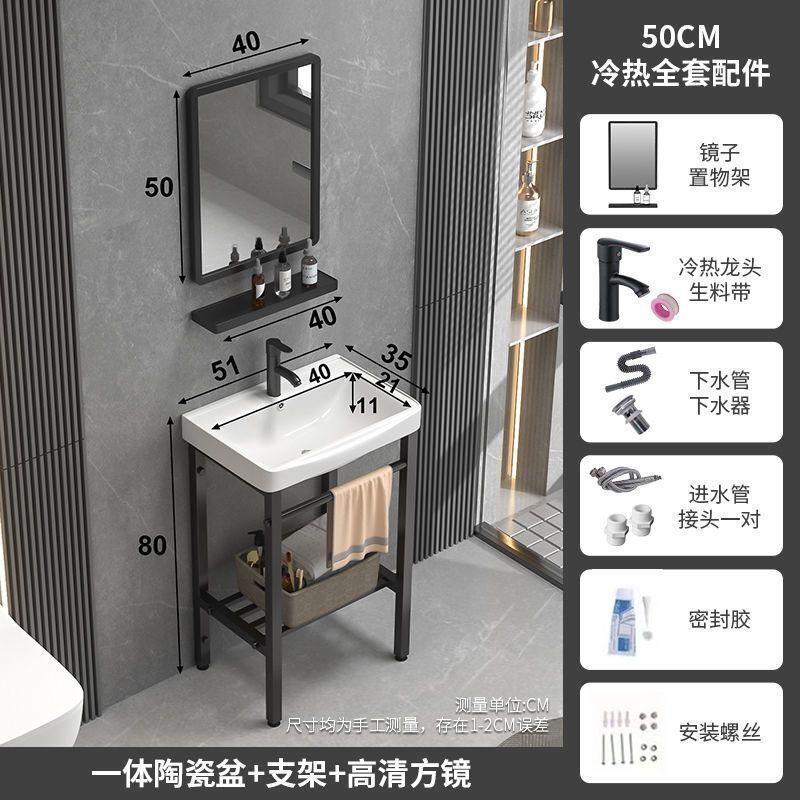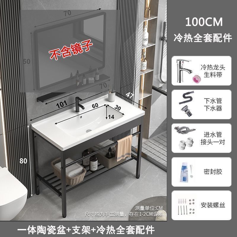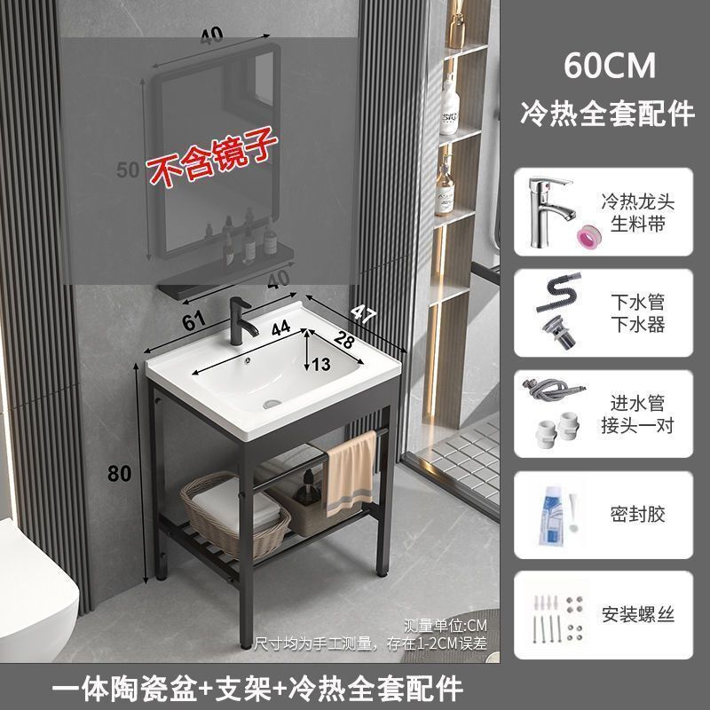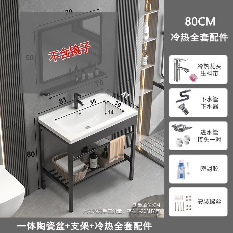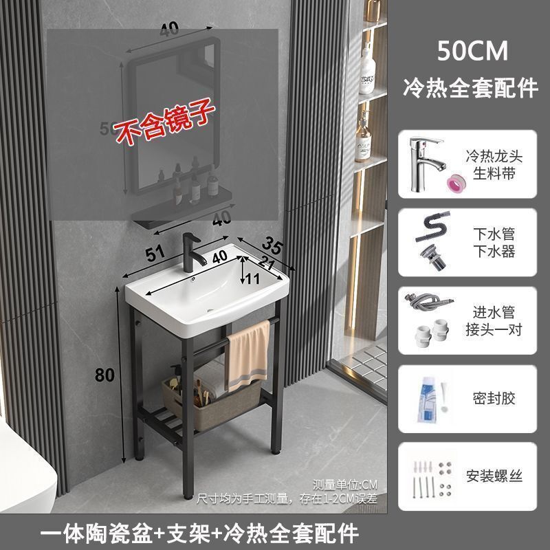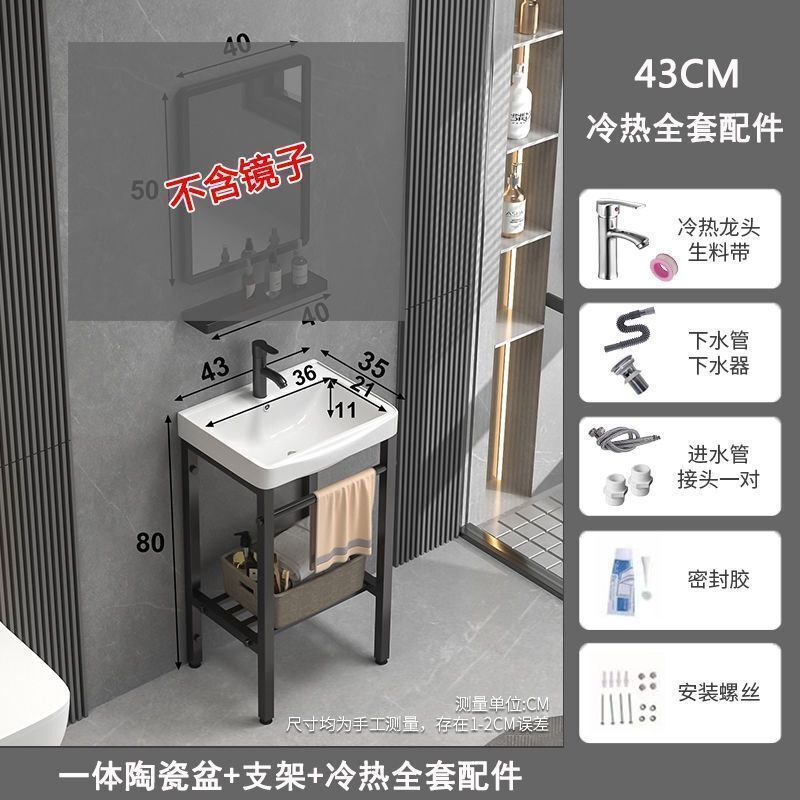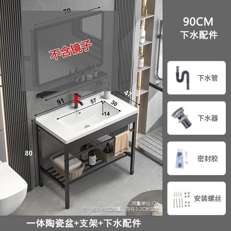 陽臺洗手盆陶瓷不銹鋼支架落地式洗臉盆小戶型衛生間免打孔洗漱臺