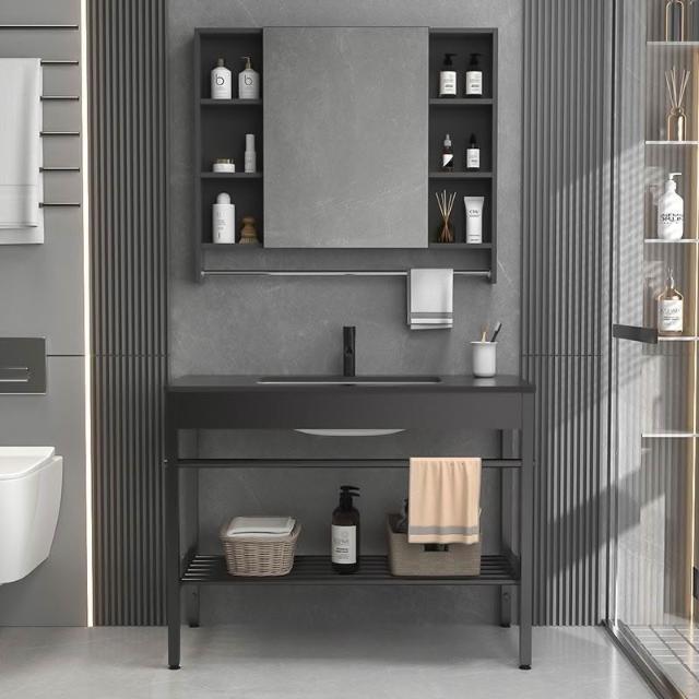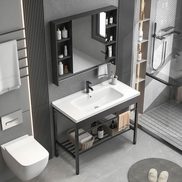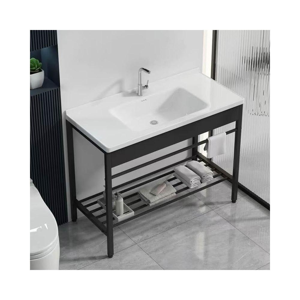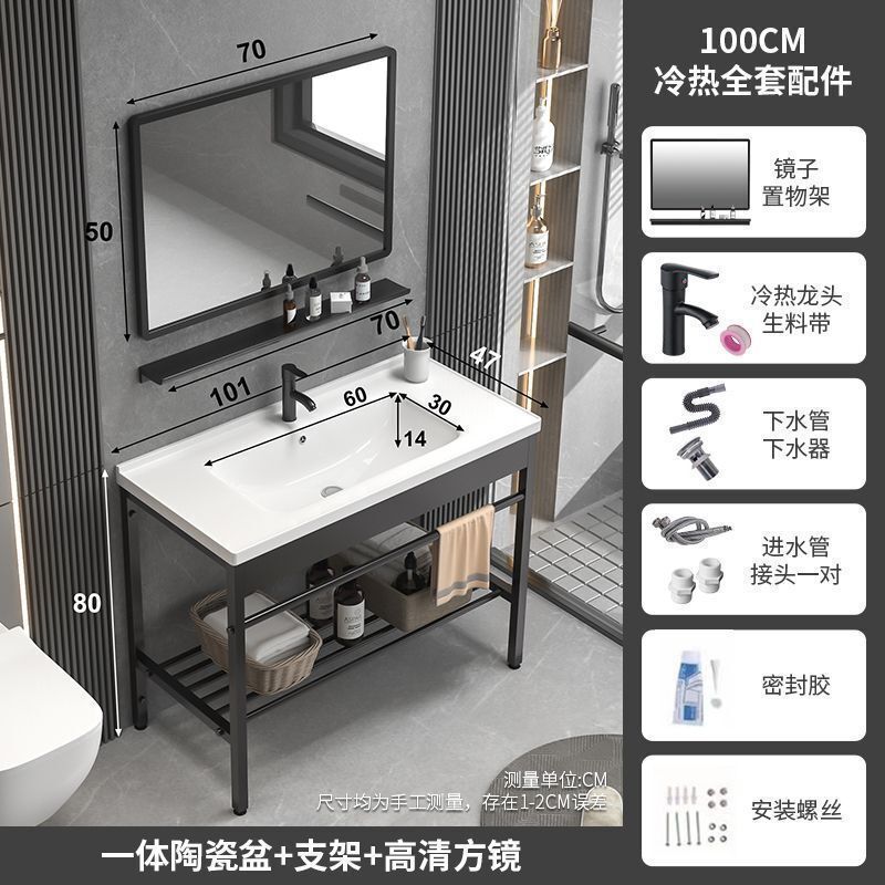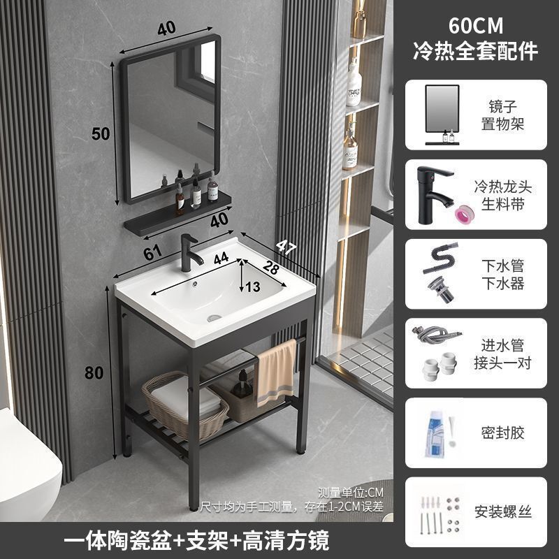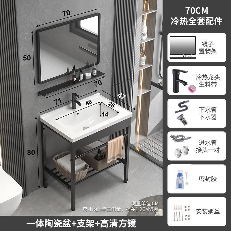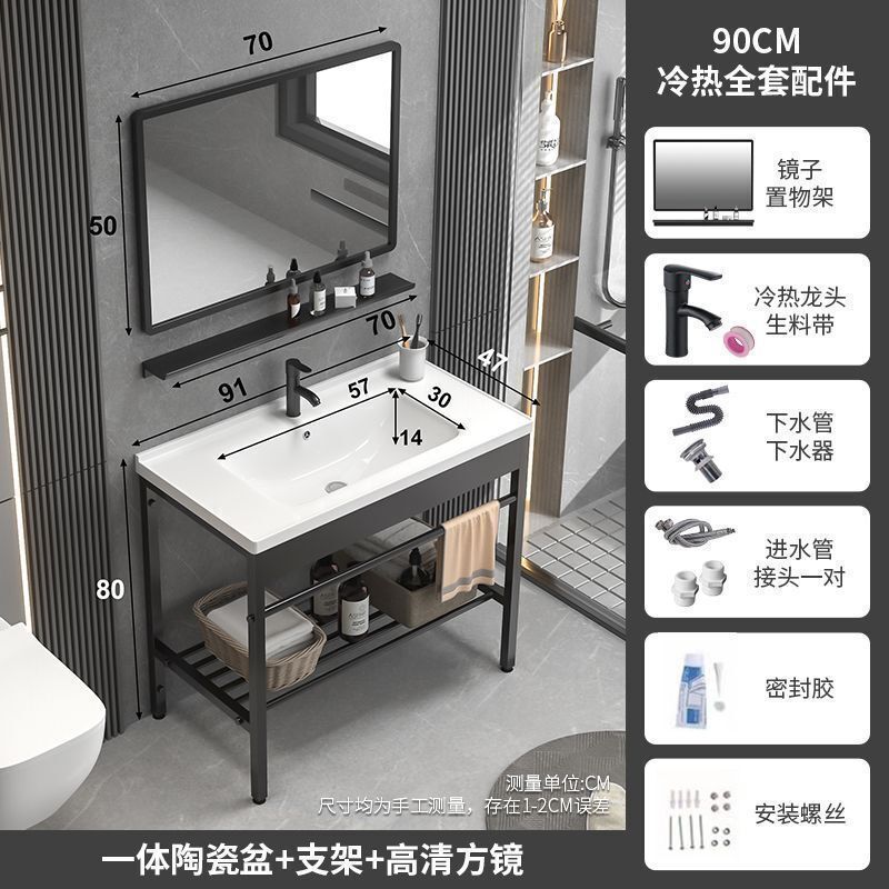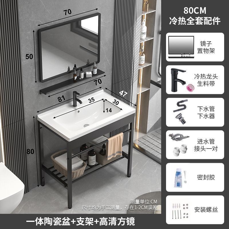 陽臺洗手盆陶瓷不銹鋼支架落地式洗臉盆小戶型衛生間免打孔洗漱臺