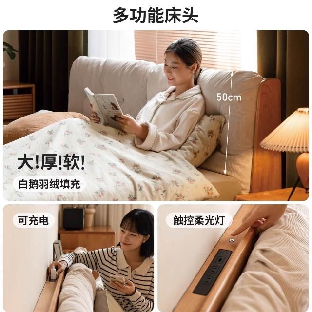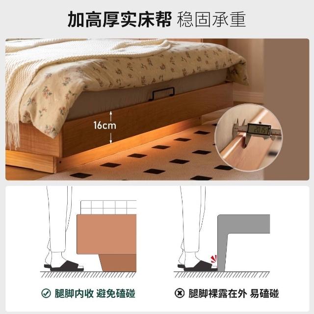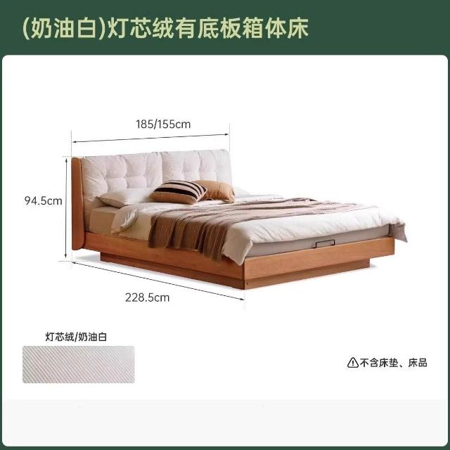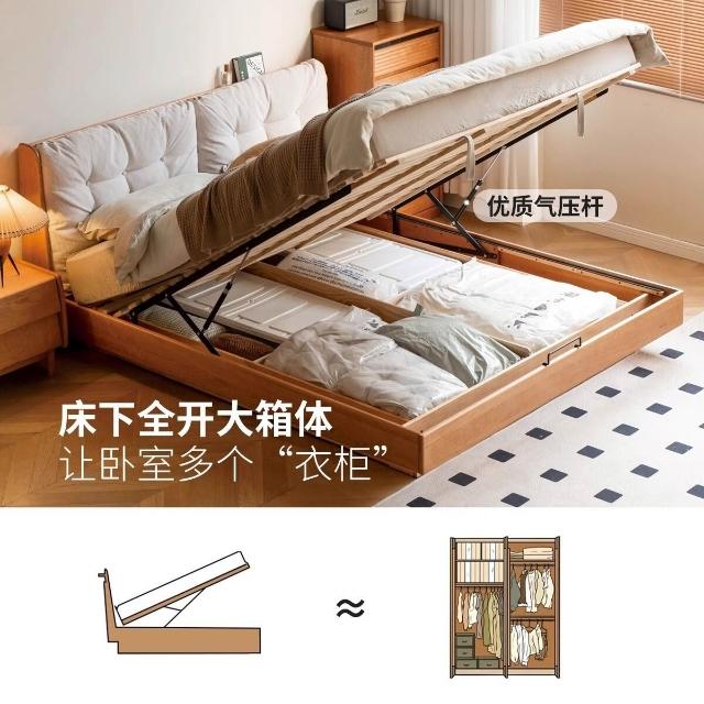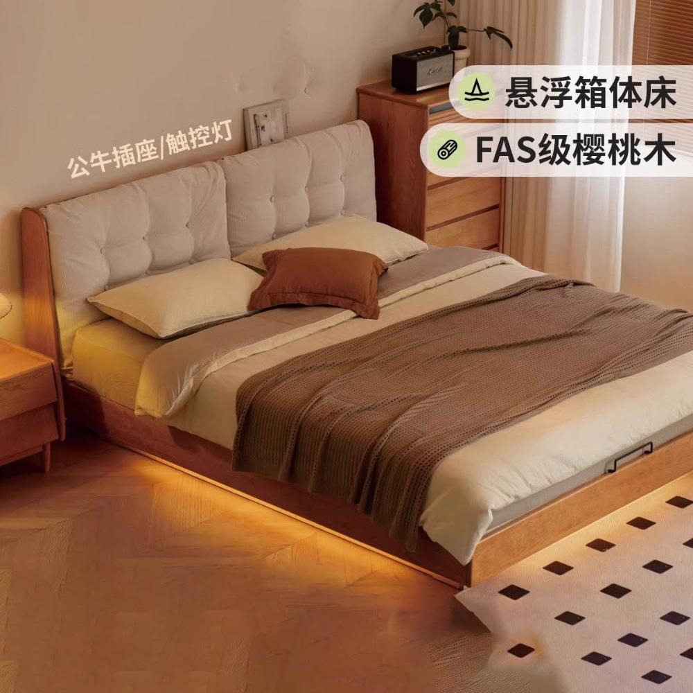 實木箱體床儲物床櫻桃木雙人床現代簡約軟靠懸浮床收納床