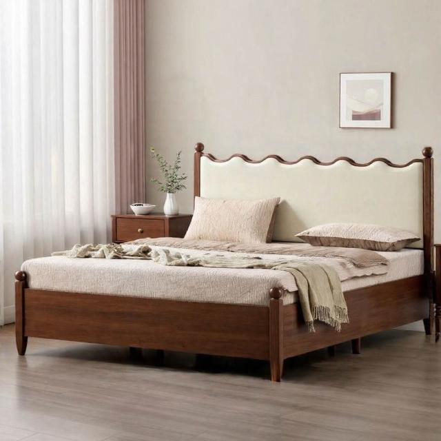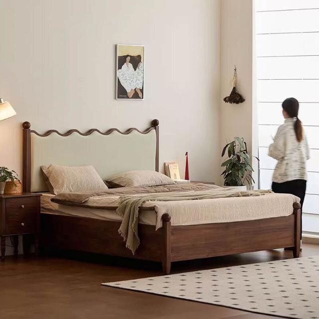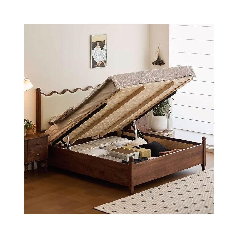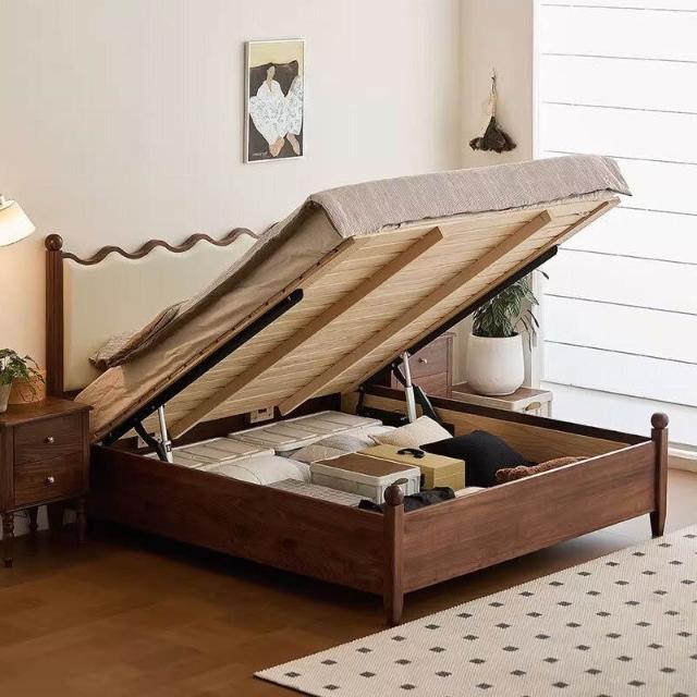 北美黑胡桃木北歐雙人床全實木靠背主臥箱體床高箱儲物床實木定製
