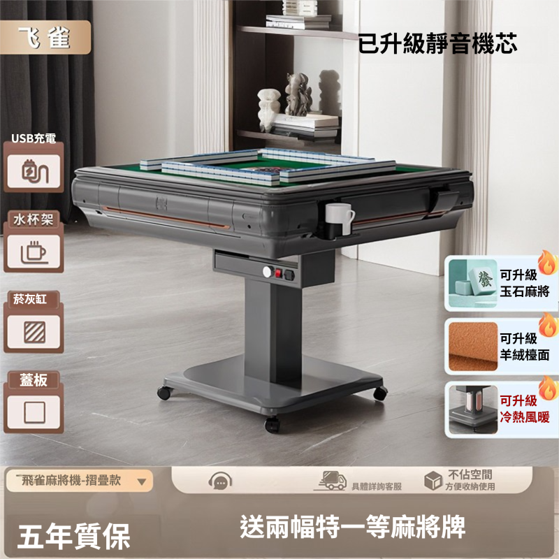 靜音電動麻將機 旋風折疊款 加厚邊框 附餐桌蓋板 居家娛樂 摺疊省空間 送麻將兩副+配件