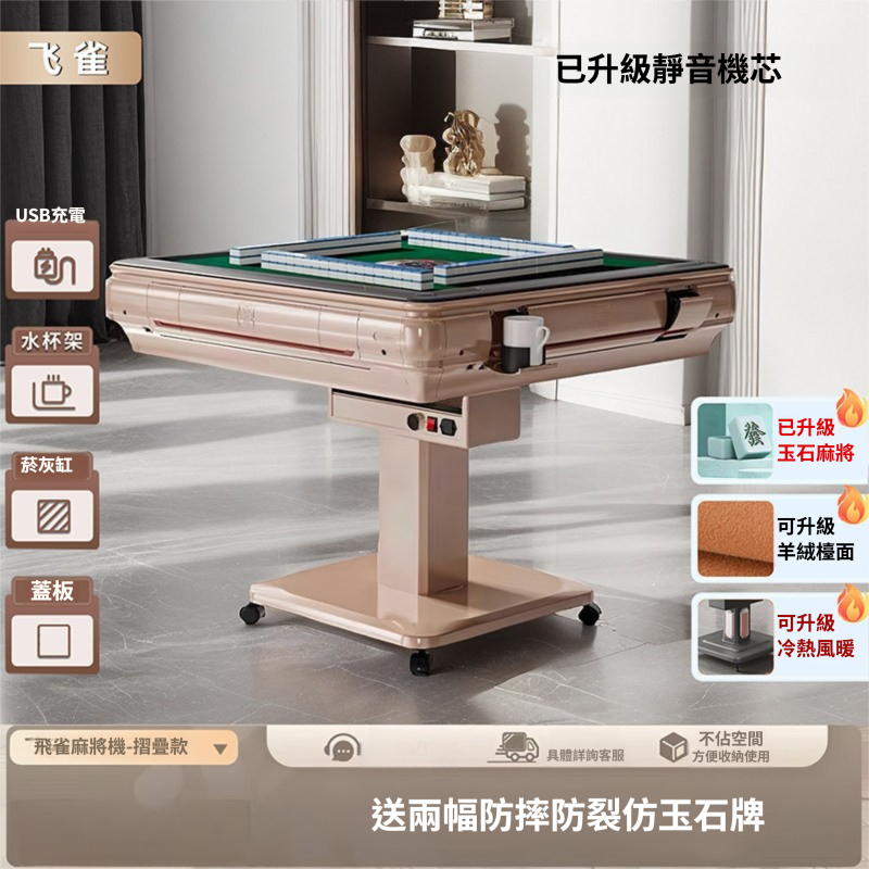 靜音電動麻將機 旋風折疊款 加厚邊框 附餐桌蓋板 居家娛樂 摺疊省空間 送麻將兩副+配件
