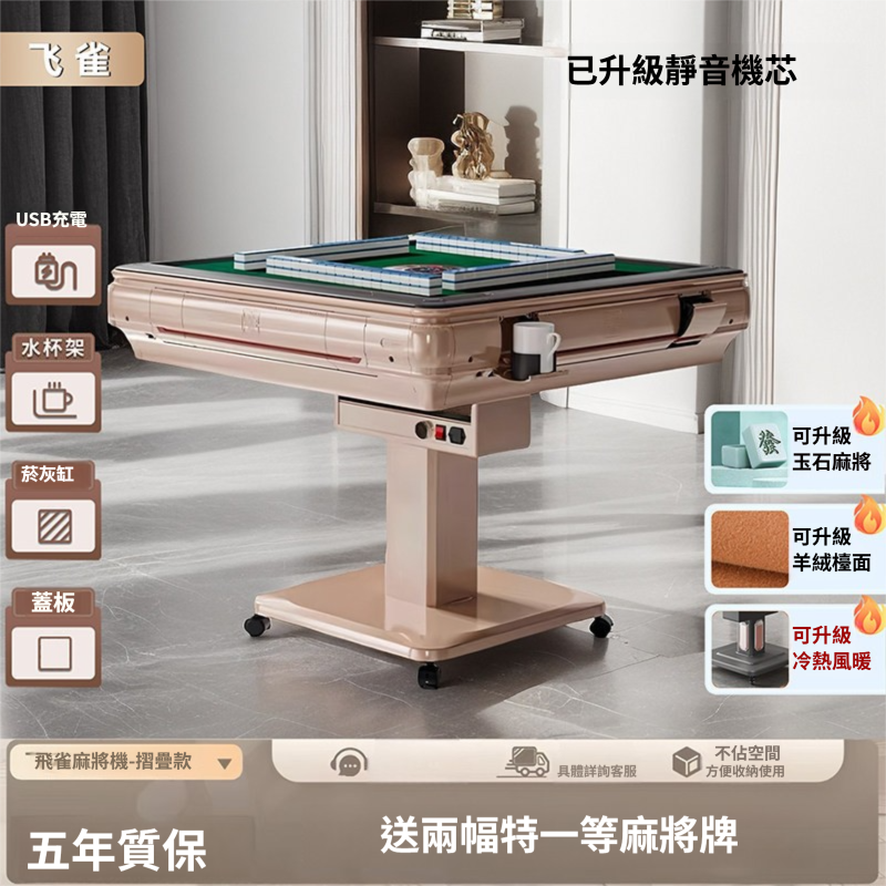 靜音電動麻將機 旋風折疊款 加厚邊框 附餐桌蓋板 居家娛樂 摺疊省空間 送麻將兩副+配件