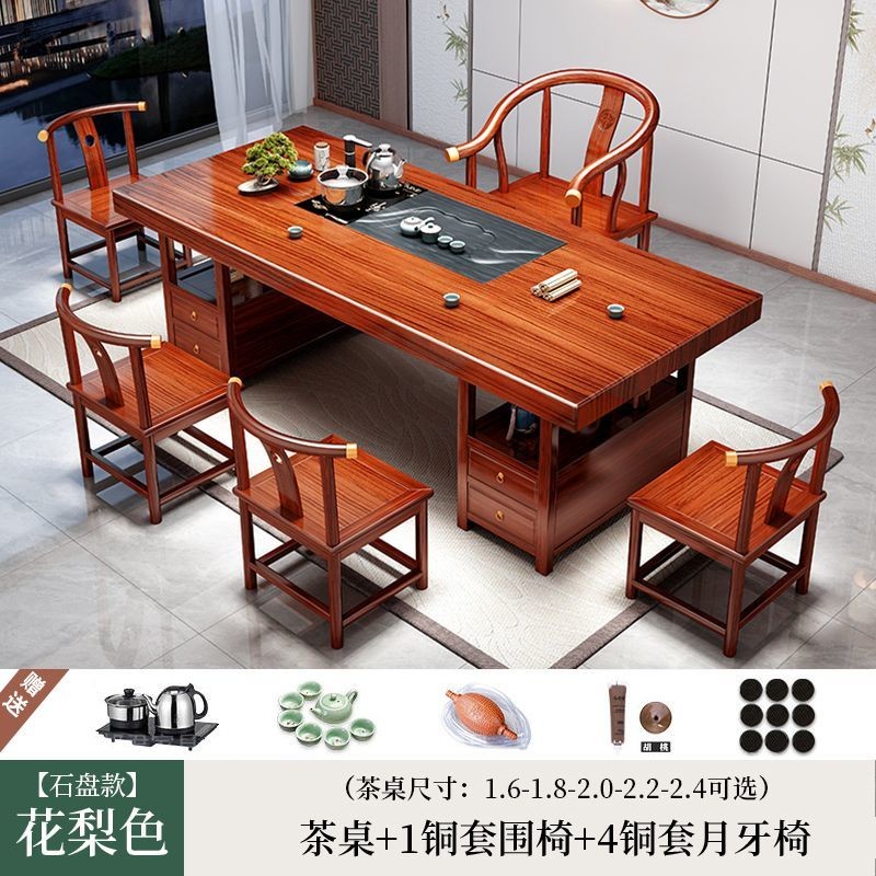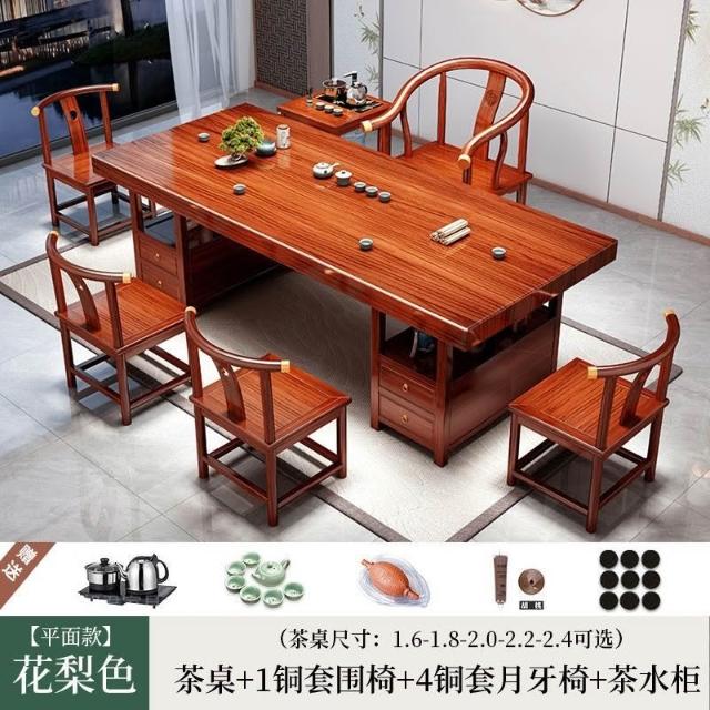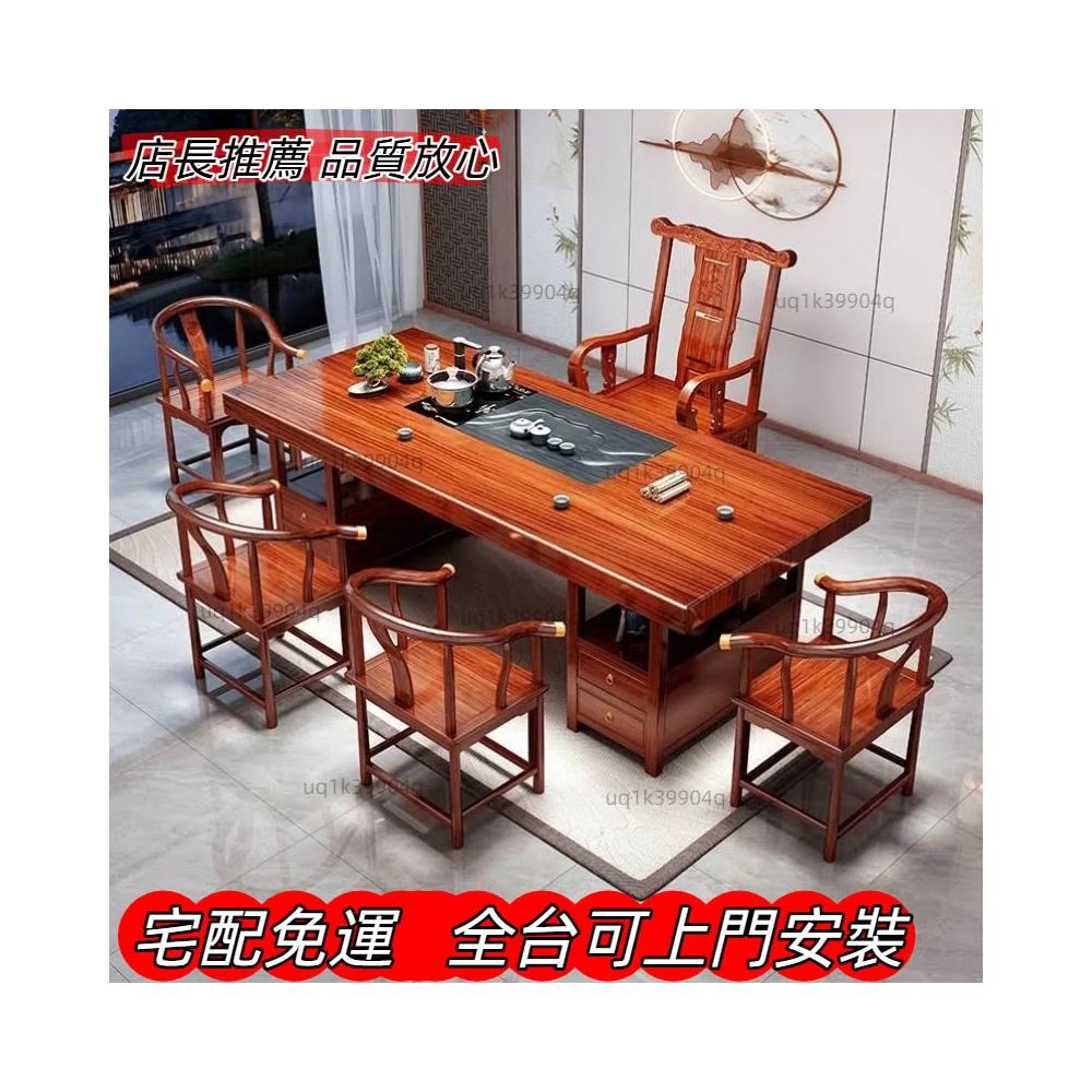 可付費上門組裝免運 茶桌 原木實木大闆中式桌椅組閤 家用茶臺一體一整套辦公室茶幾泡茶