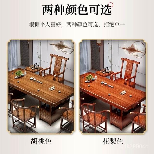 可付費上門組裝免運 茶桌 原木實木大闆中式桌椅組閤 家用茶臺一體一整套辦公室茶幾泡茶