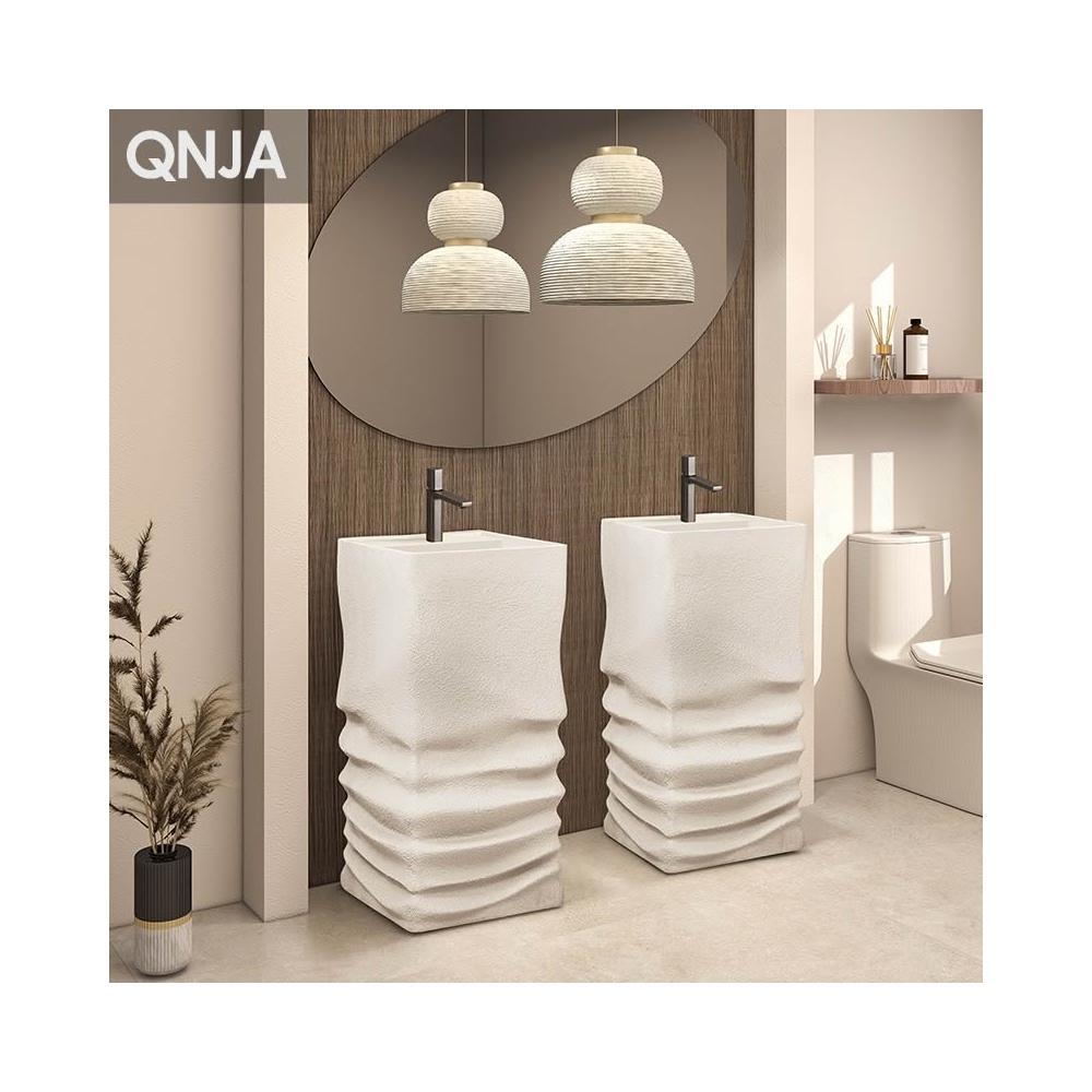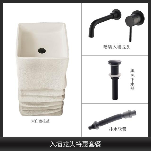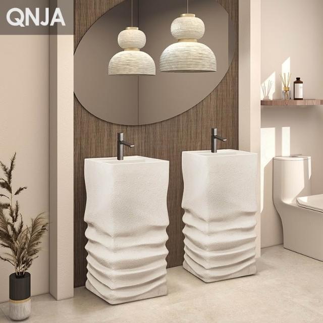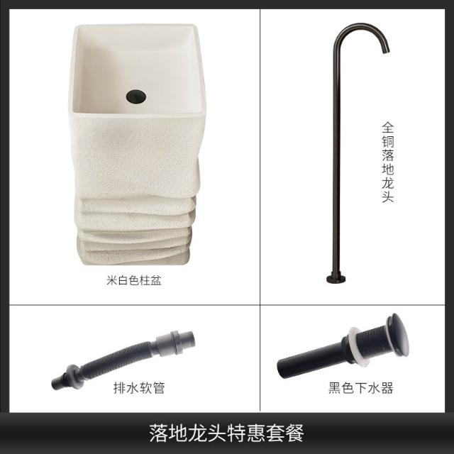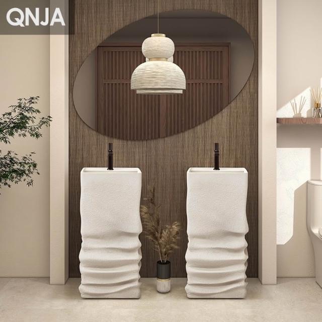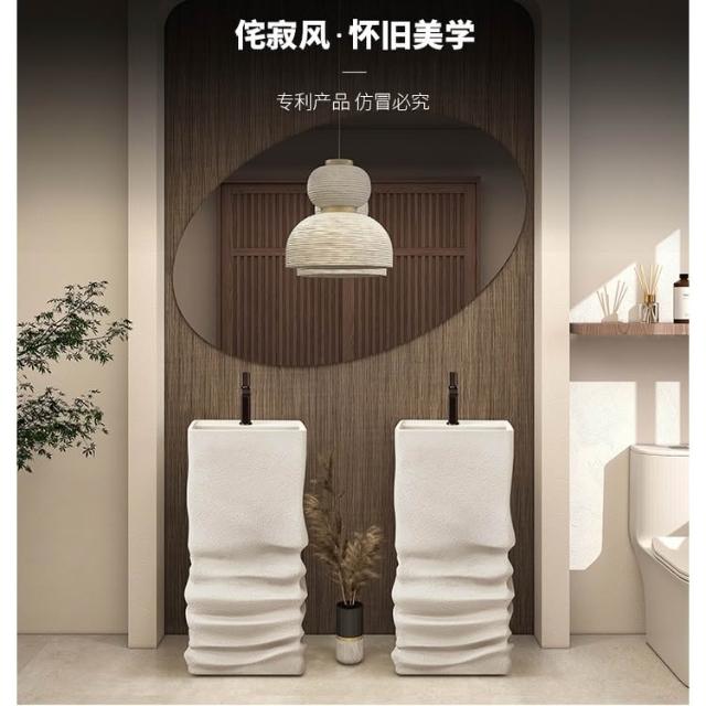 日式侘寂風洗手盆 洗臉盆 設計師立柱盆 落地式一體洗手池 個性創意洗手盆 洗臉池