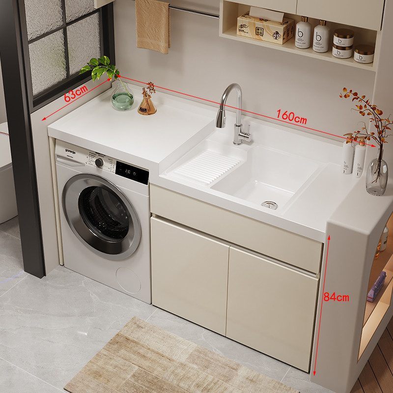陽臺洗衣機櫃 陽臺櫃 洗衣櫃 蜂窩鋁陽臺洗衣櫃一體臺盆洗衣池槽帶搓板滾筒洗衣機櫃伴侶浴室櫃