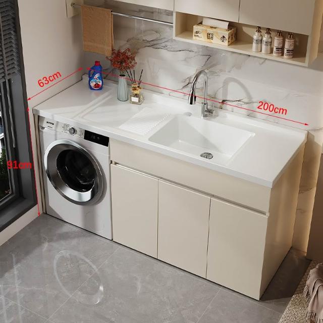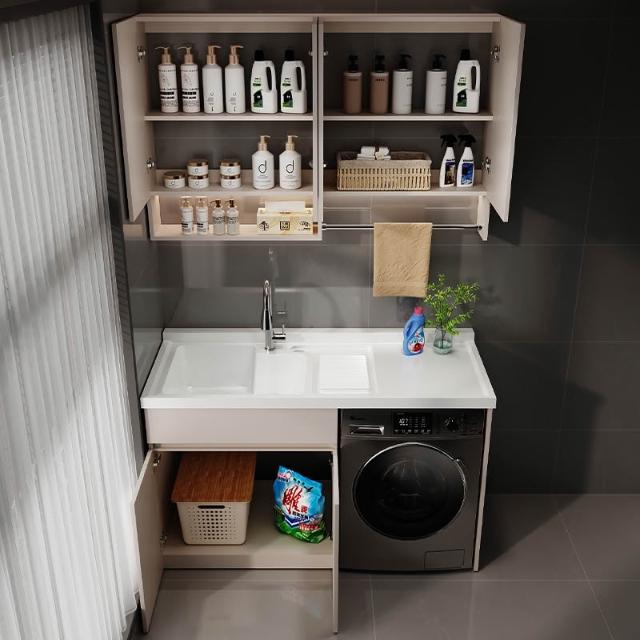 陽臺洗衣機櫃 陽臺櫃 洗衣櫃 蜂窩鋁陽臺洗衣櫃一體臺盆洗衣池槽帶搓板滾筒洗衣機櫃伴侶浴室櫃