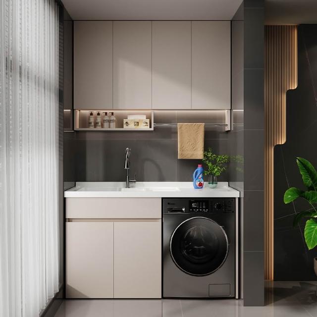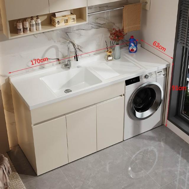 陽臺洗衣機櫃 陽臺櫃 洗衣櫃 蜂窩鋁陽臺洗衣櫃一體臺盆洗衣池槽帶搓板滾筒洗衣機櫃伴侶浴室櫃