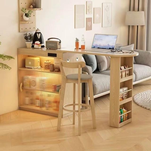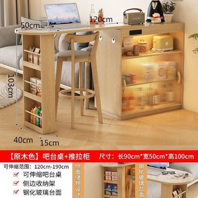 隔斷櫃 島臺 吧臺餐邊櫃一體實木日式可收縮伸縮折疊餐桌窄島臺家用客廳隔斷櫃