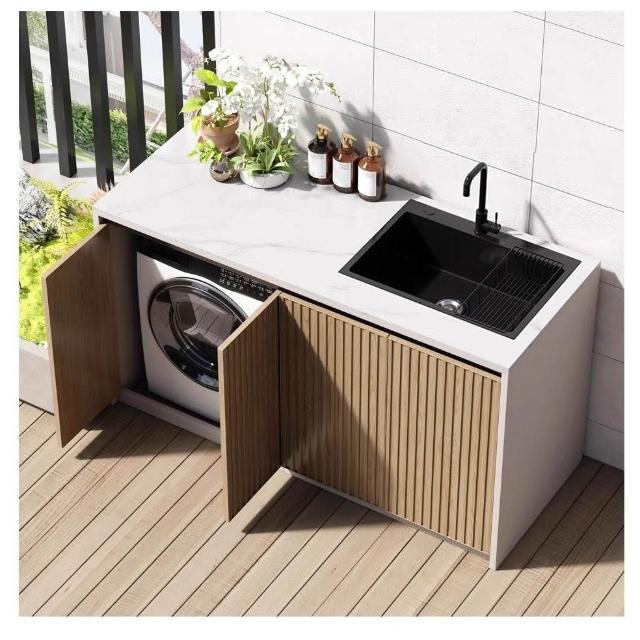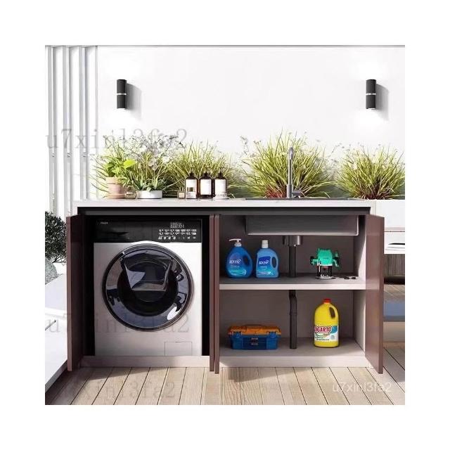 鋁製收納櫃 戶外全鋁閤金巖闆洗衣機一體櫃室外花園別墅水槽防水防曬洗手臺盆 落地櫃 陽檯櫃洗衣機櫃 戶外儲物