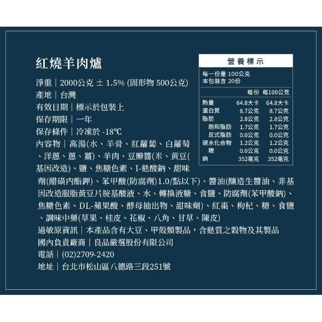 良品開飯西門老店牛雜大王 紅燒帶皮羊肉爐2000g火鍋 年菜 預購 帶皮羊肉 即期品