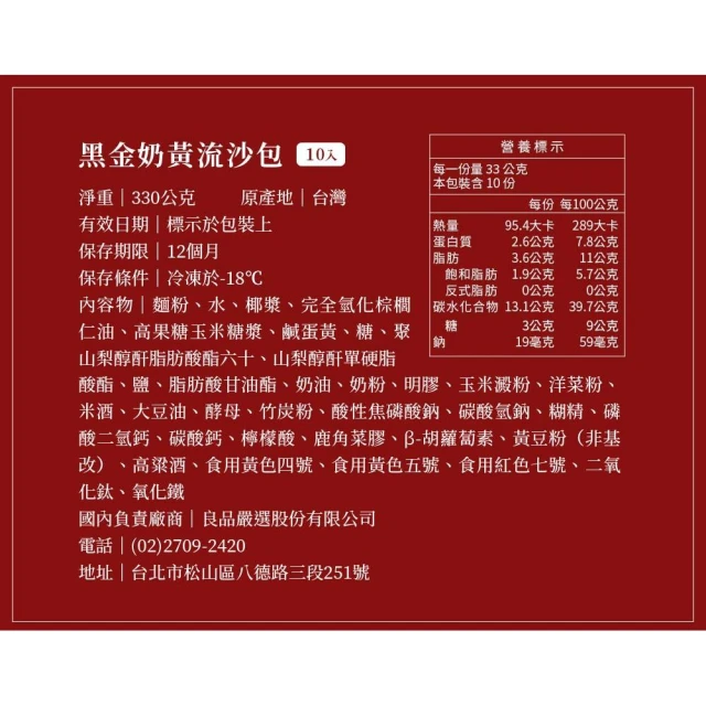 良品開飯黑金奶皇流沙包10入 港點 粵味 年菜 預購 奶皇包