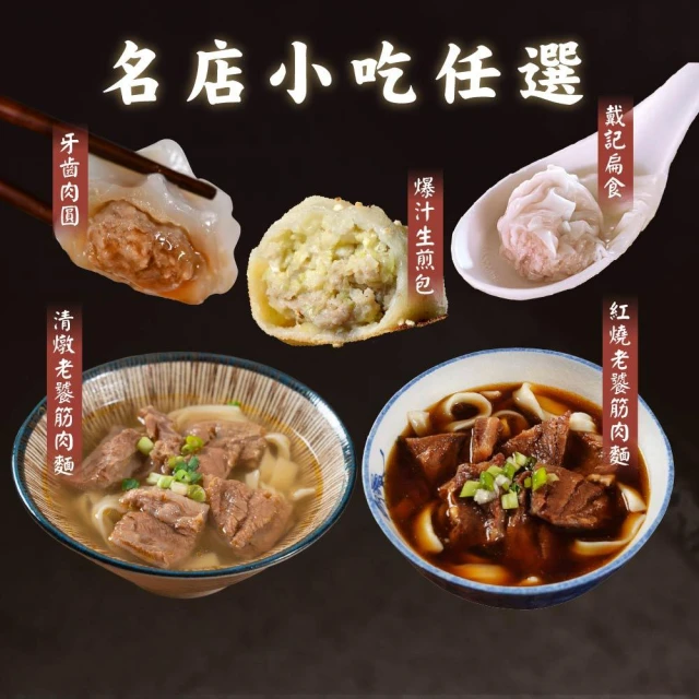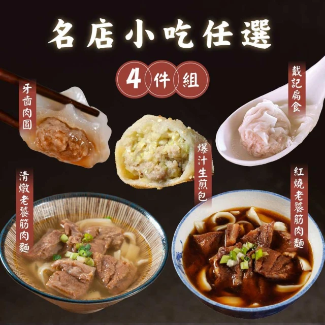良品開飯名店小吃任選組4件組 (台南肉圓 台北生煎包 台北牛肉湯 花蓮扁食)