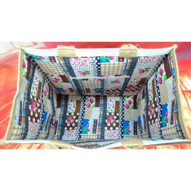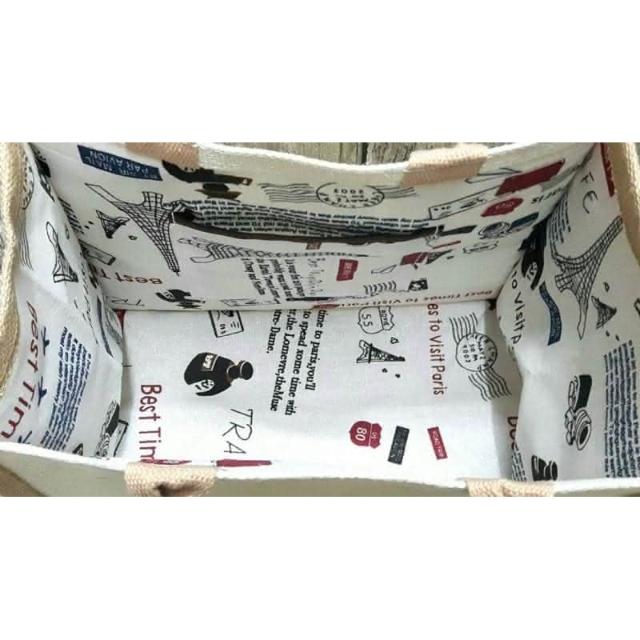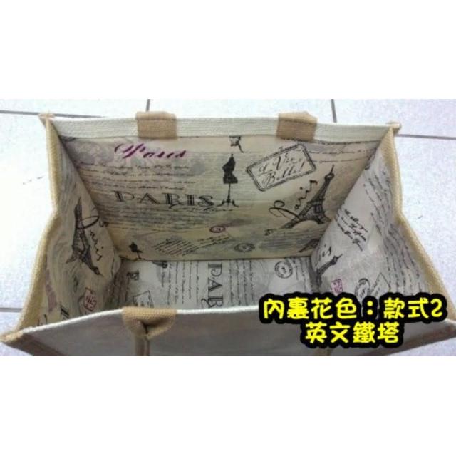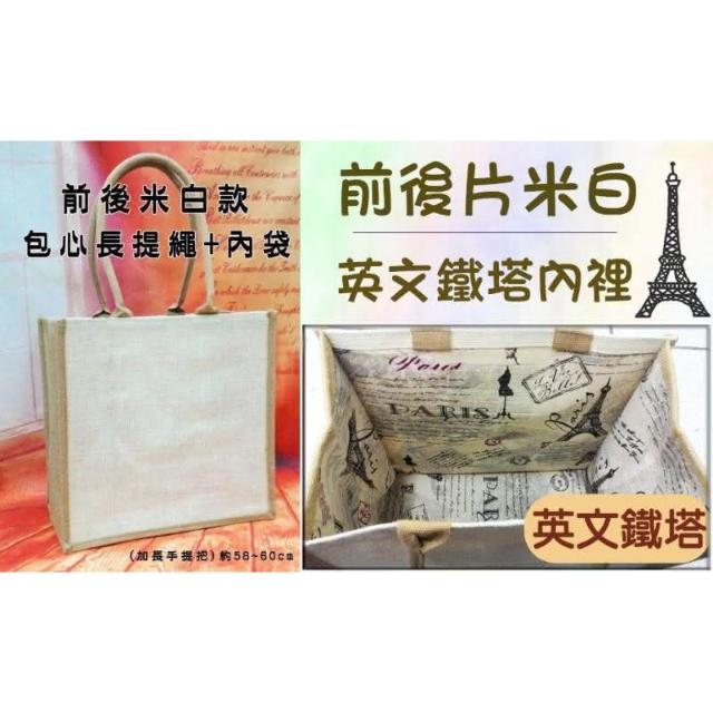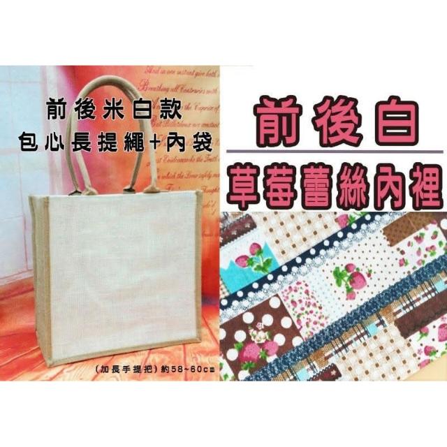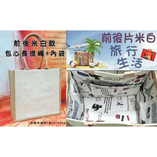 大方款-有內裡-前後白-加長提把麻布袋(蝶古巴特 拼貼麻布袋 彩繪胚布袋 購物袋 午餐袋 手提袋 環保袋)