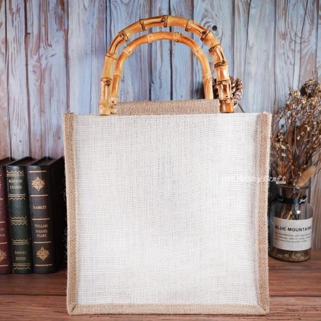 竹提把麻布袋(內有圖 MIT帆布袋 蝶古巴特 拼貼麻布袋 彩繪胚布袋 購物袋 防水午餐袋 古風手提袋 環保袋)