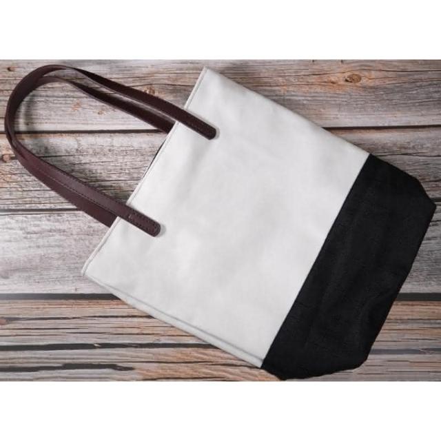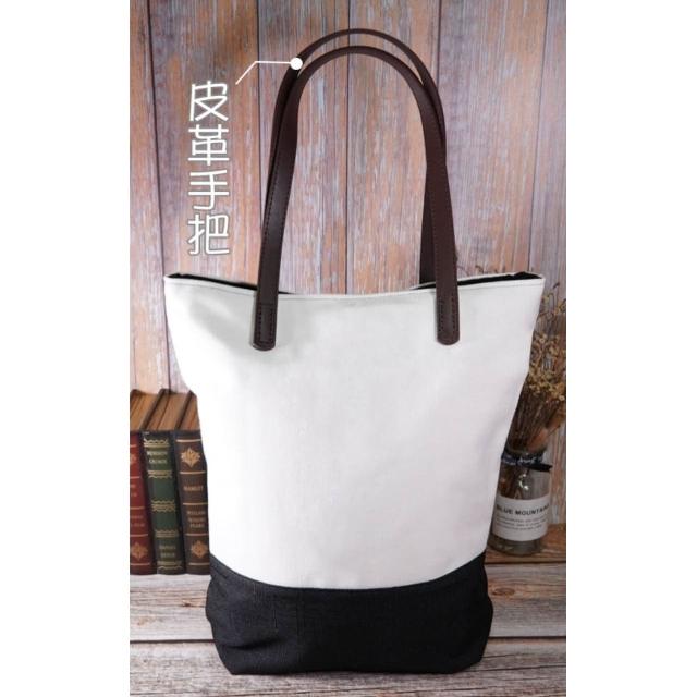 雙色拼接 皮質手把 帆布包(帆布手提包 帆布包 手提袋 蝶古巴特收納袋 環保袋 胚布袋 單肩包 購物袋)