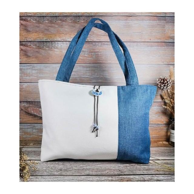 藍白拼接-青花瓷扣拉鍊側背包︱側背包 單肩包 手提包 復古提袋 手提袋 帆布包 收納袋 環保袋 蝶古巴特︱麥手作