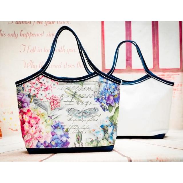 藍提藍底-玫瑰內裡包-無按扣(側背包 單肩包 手提袋 帆布包 收納袋 環保袋 蝶古巴特 手提包)