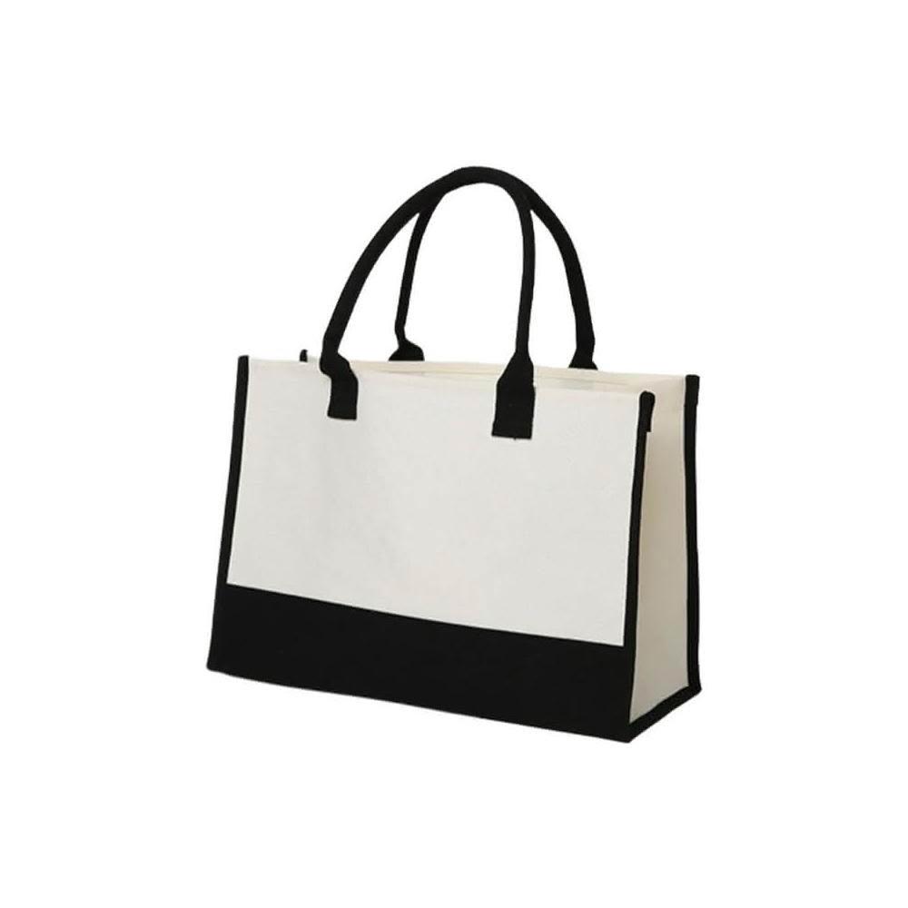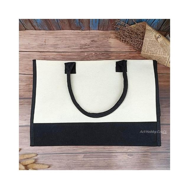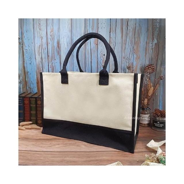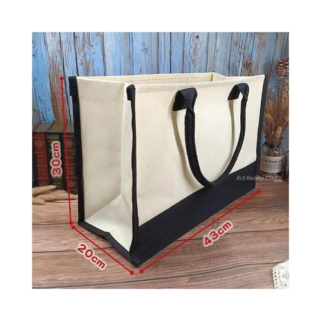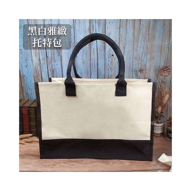 黑白雅緻托特包-帆布(帆布袋 托特包 帆布手提包 帆布包 手提袋 蝶古巴特收納袋 環保袋 胚布袋)