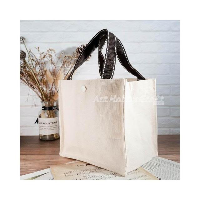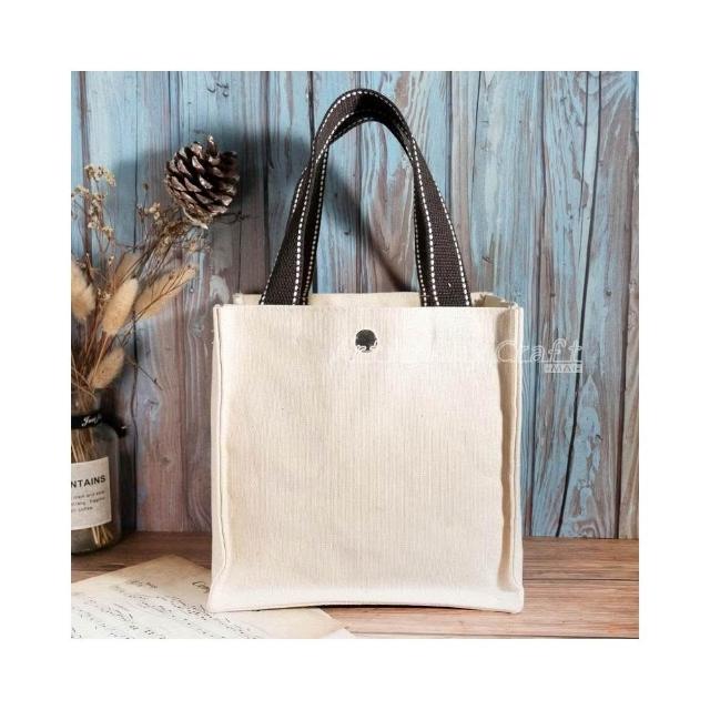 布點布包-17:【按扣款/有內袋便當袋胚布米色 |MIT帆布袋 手提包 帆布按扣袋 帆布袋 便當袋 隨身包 胚布袋