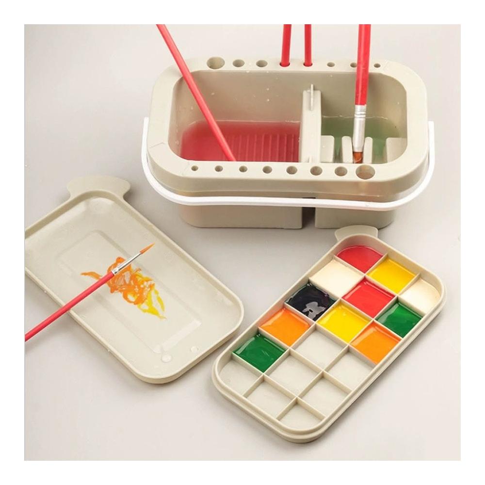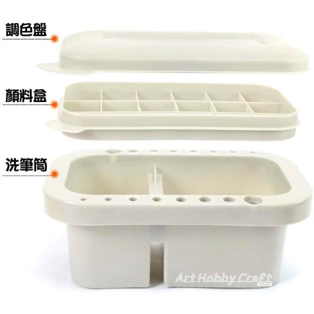 - 調色盤+顏料盒+洗筆桶一次搞定