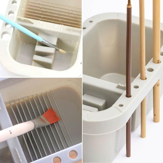 三件套-洗筆筒︱洗筆筒 調色盤 筆筒 便攜顏料洗筆筒 多功能洗筆桶 繪畫清洗桶 洗筆盒 洗水彩