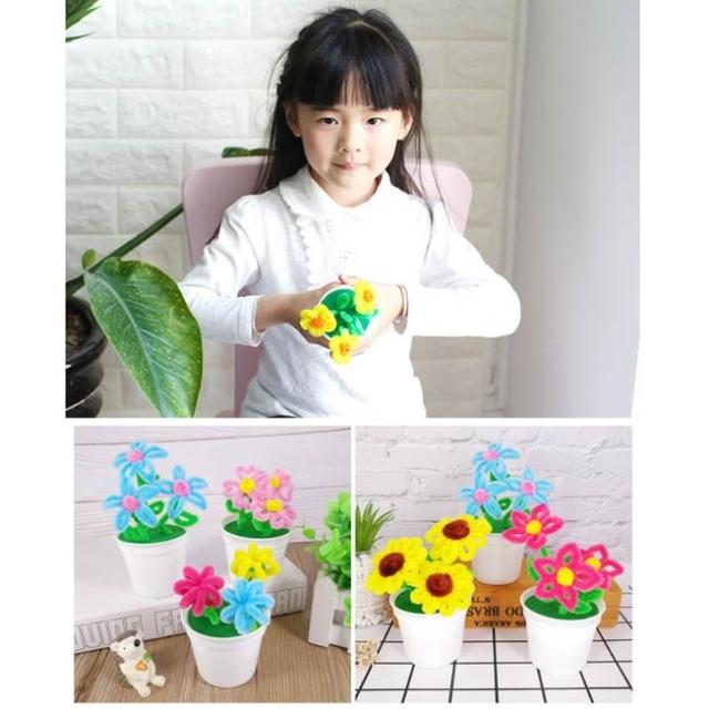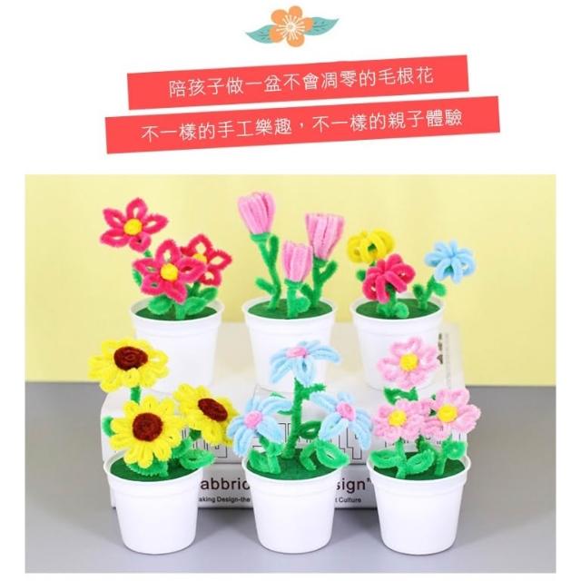 毛根小花盆栽∣DIY材料包 美勞 手作材料包 手工扭扭棒盆栽 兒童DIY 毛根盆栽 兒童手作 DIY毛根花∣麥手作
