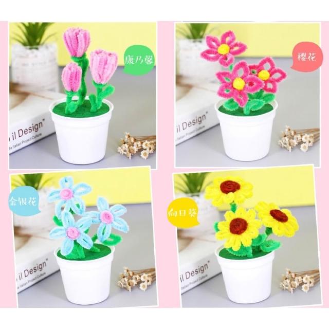 毛根小花盆栽∣DIY材料包 美勞 手作材料包 手工扭扭棒盆栽 兒童DIY 毛根盆栽 兒童手作 DIY毛根花∣麥手作
