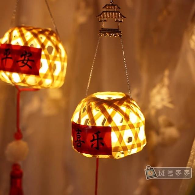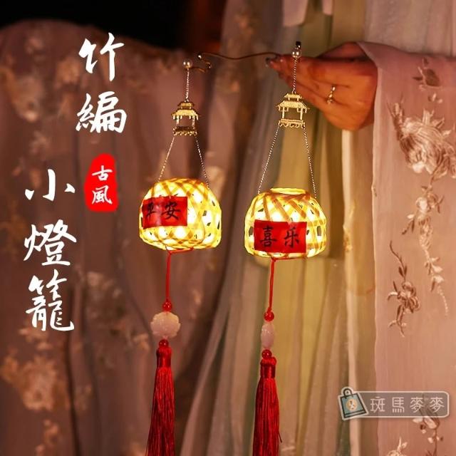 古風竹編小燈籠材料包︱竹編髮光中秋手提國風竹籠 DIY材料包 手提 古風 宮燈 竹編 花燈 燈籠︱麥手作