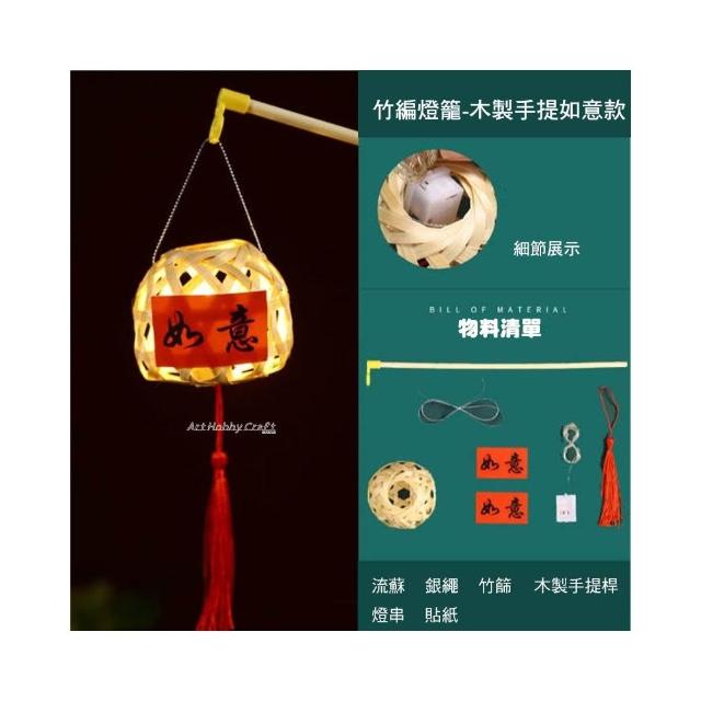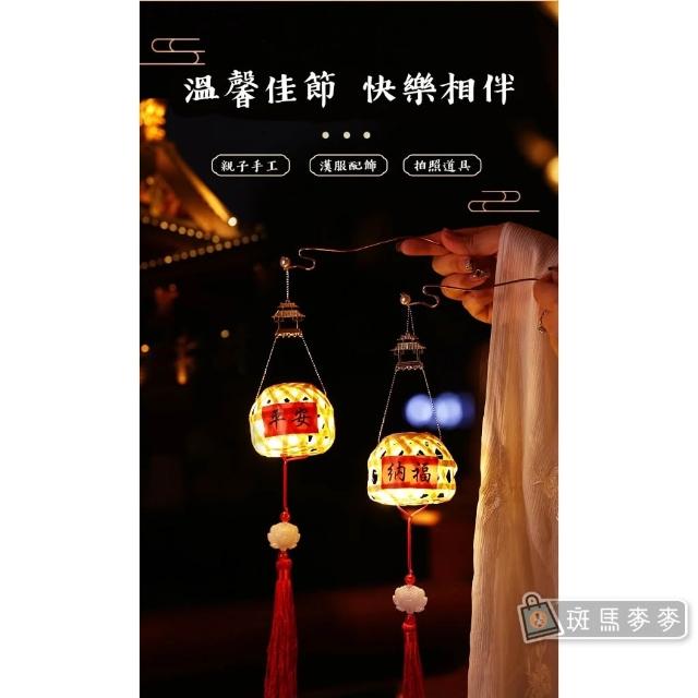 古風竹編小燈籠材料包︱竹編髮光中秋手提國風竹籠 DIY材料包 手提 古風 宮燈 竹編 花燈 燈籠︱麥手作