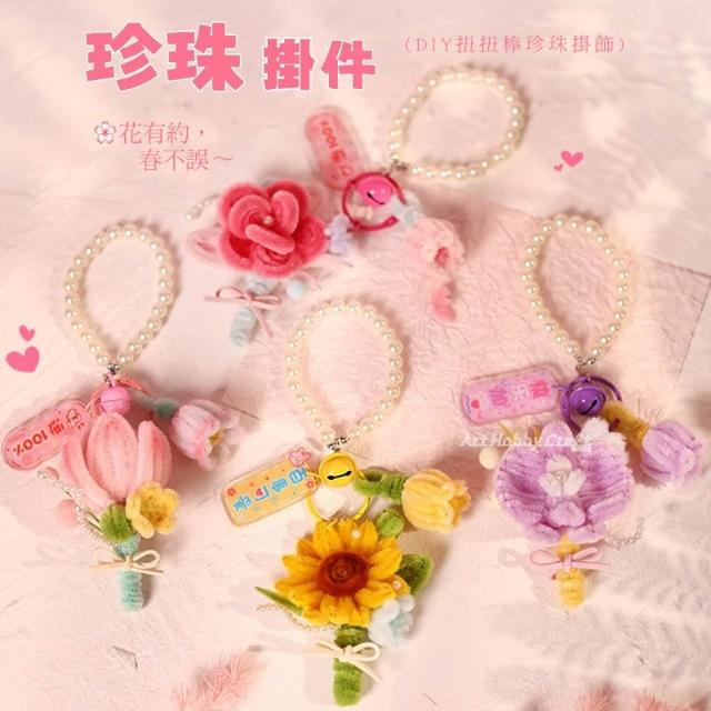 毛根珍珠吊飾材料包︱DIY掛飾 向日葵 玫瑰花 扭扭棒 手作 禮物 裝飾素材︱麥手作