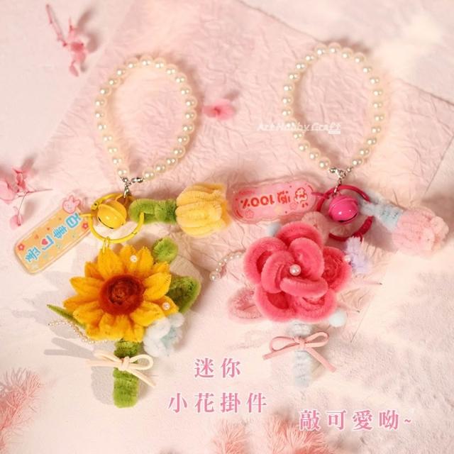 毛根珍珠吊飾材料包︱DIY掛飾 向日葵 玫瑰花 扭扭棒 手作 禮物 裝飾素材︱麥手作