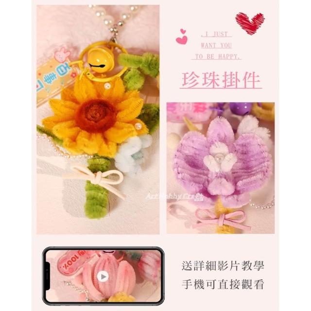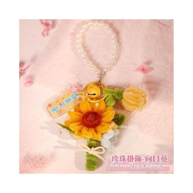 毛根珍珠吊飾材料包︱DIY掛飾 向日葵 玫瑰花 扭扭棒 手作 禮物 裝飾素材︱麥手作